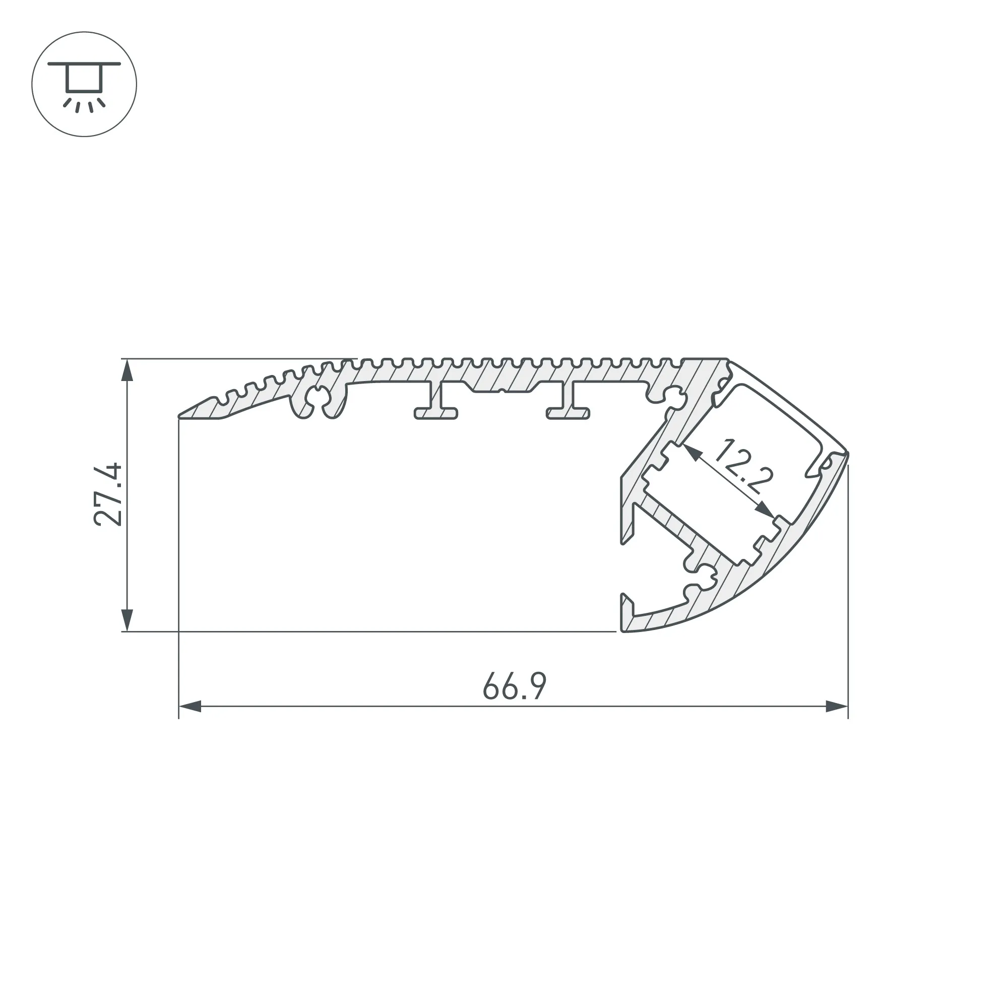 Комплект с экраном. Алюминиевый профиль для подсветки ступеней в жилых помещениях. Подсветка вверх. Габаритные размеры (L×W×H): 2000x66,9x27,3 мм. Ширина площадки для ленты 12,2 мм. Аксессуары приобретаются отдельно. Цена за комплект (с экраном и вставкой).