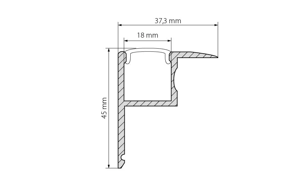 Анодированный профиль 2м Alu-Ceiling, в комплекте с матовым экраном. Для встраивания в гипсокартонные потолки. Для лент шириной до 17мм.