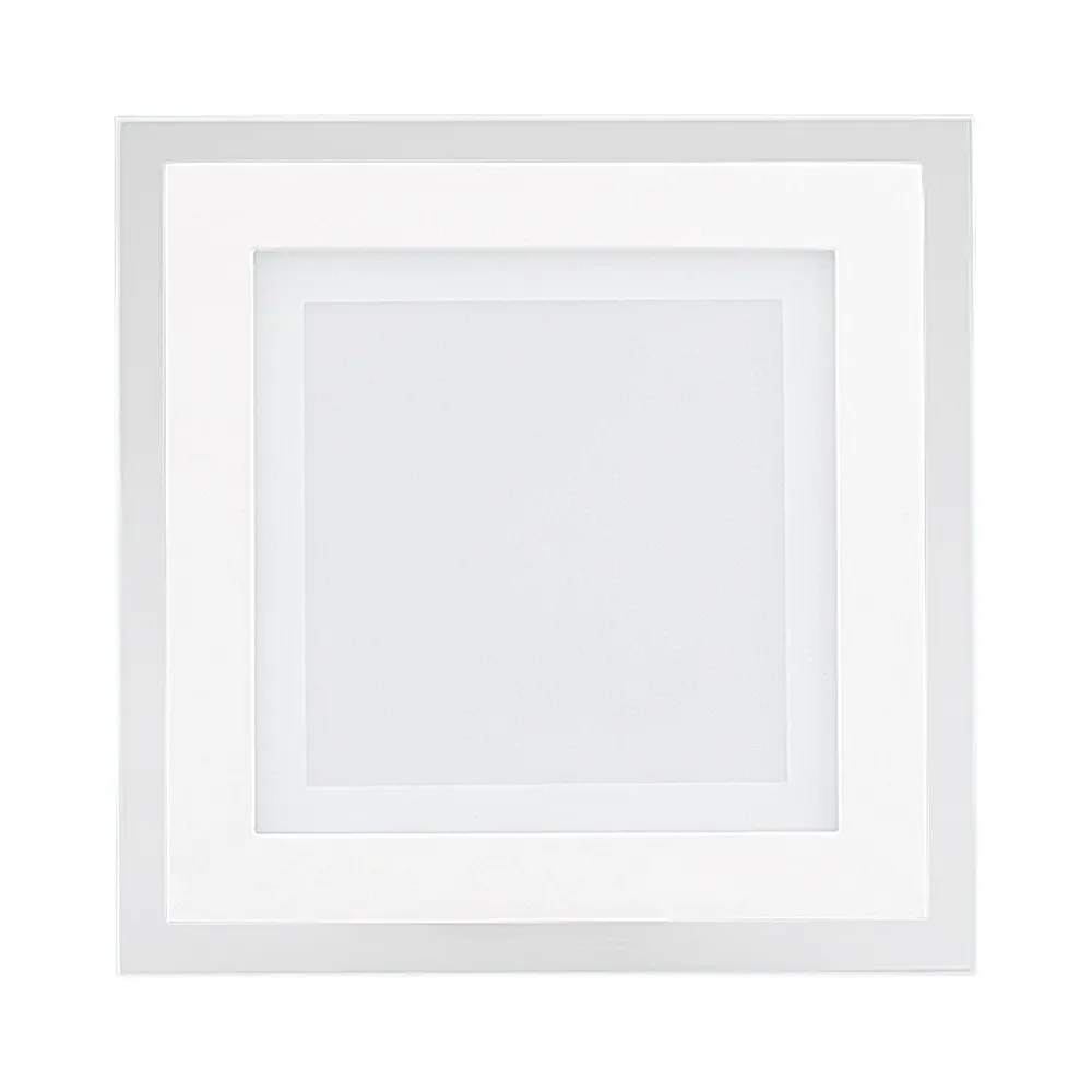 Стеклянная квадратная панель 12Вт / ДНЕВНОЙ 4000-4500K / 950лм / 120°. Размер 160x160x45мм (в отверстие 125x125мм). Корпус белый. Питание от сети AC 230V, драйвер в к-те 300mA 25-45V. Для использования с диммерами TRIAC замените драйвер на ARJ-LK48320-DIM (приобретается отдельно). Для помещений.
