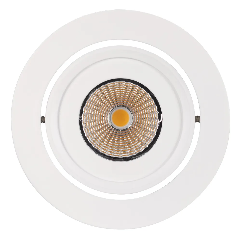 Встраиваемый круглый светильник с наклоняемой осью, угол наклона оси ~30°, угол свечения 45° / 9Вт / ДНЕВНОЙ 4000K / светодиод 1x9W CITIZEN / 672 лм. Белая лицевая панель. Питание AC230V (драйвер в к-те 220mA 30-45V). Размеры DxH: 109х102мм, отверстие для установки 95мм.