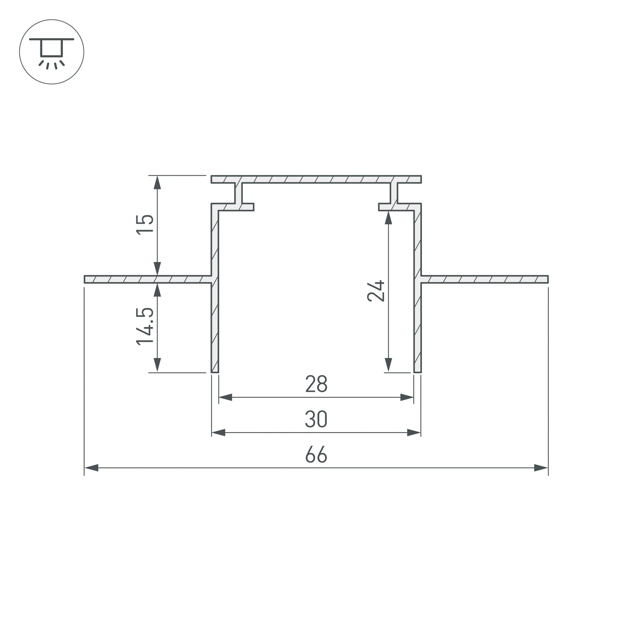 Алюминиевый профиль-держатель для встраивания в гипсокартон толщиной 12.5мм. В TEK-PLS можно установить любой профиль PLS при помощи клипс TEK-PLS-CLIP. Рекомендуется профиль PLS-LOCK-H25-FS (016446) для создания полосы света в один уровень с потолком. Размеры: высота 28мм, ширина с фланцем 66мм, основание 30мм.