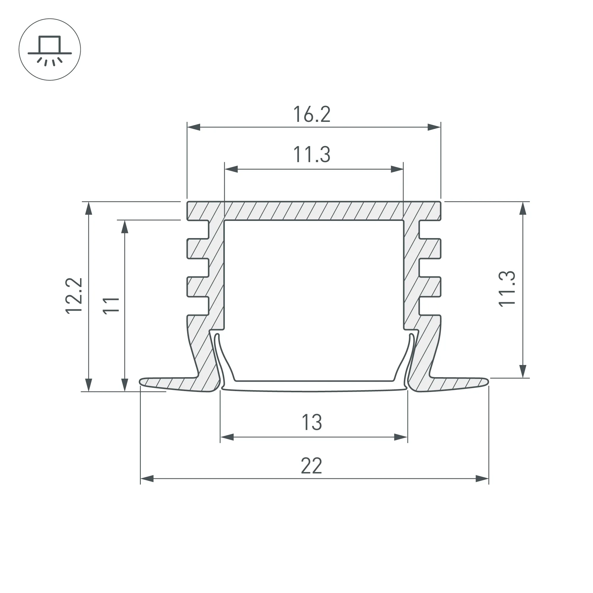 Алюминиевый анодированный профиль для светодиодных лент и линеек. Анодированный в цвет шампань. Габаритные размеры (L×W×H): 2000x22x12,2 мм. Ширина площадки для ленты 11,3 мм. Экраны, заглушки и другие аксессуары приобретаются отдельно. Цена за 1 метр.