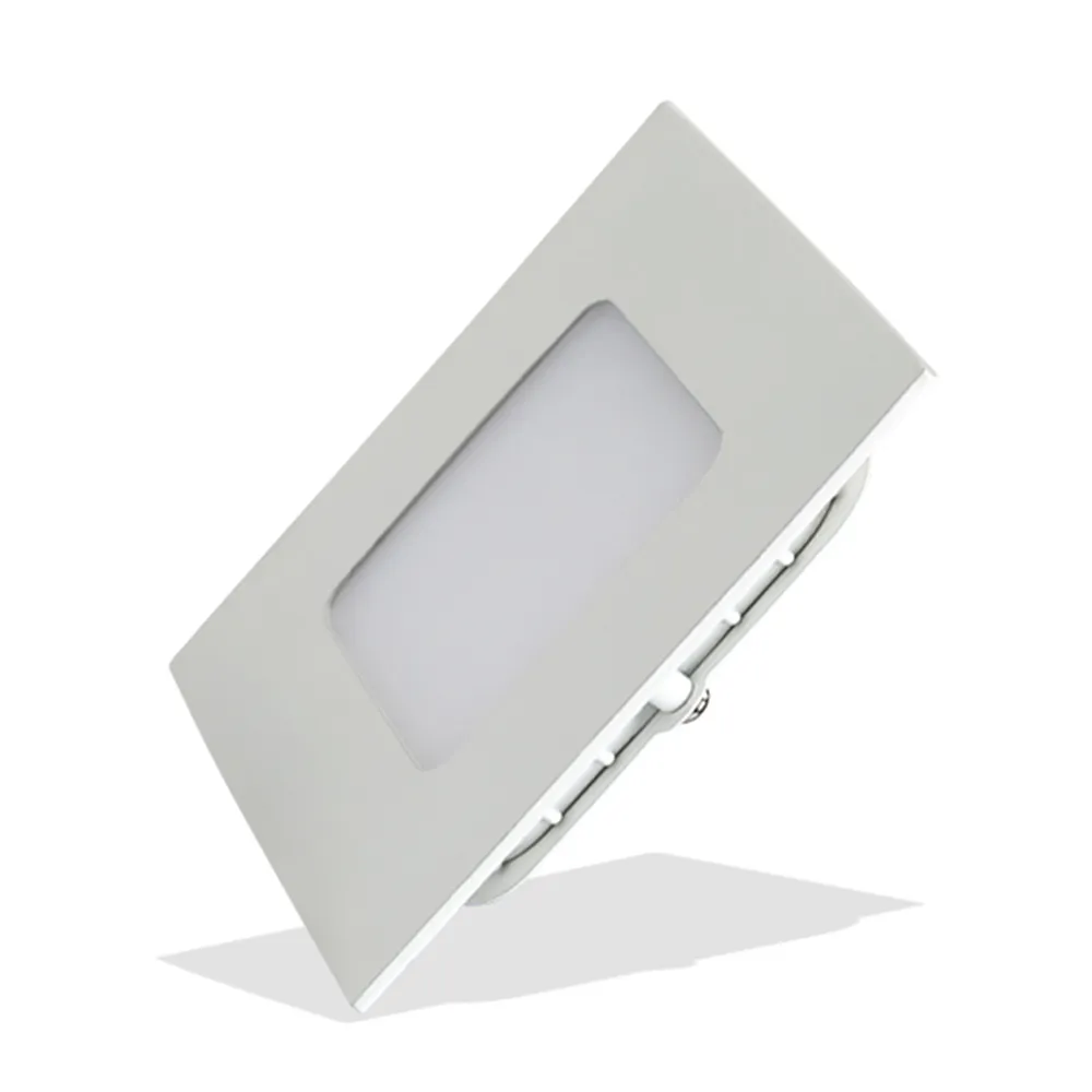Тонкая панель 3Вт / БЕЛЫЙ 6000K / 230лм / 120°. Размер 90 х 90 x 13мм (в отверстие 70х70 мм). Корпус квадратный, белый. Питание 100-240 VAC, драйвер в комлекте (300mA, 8-17V). Не диммируется.