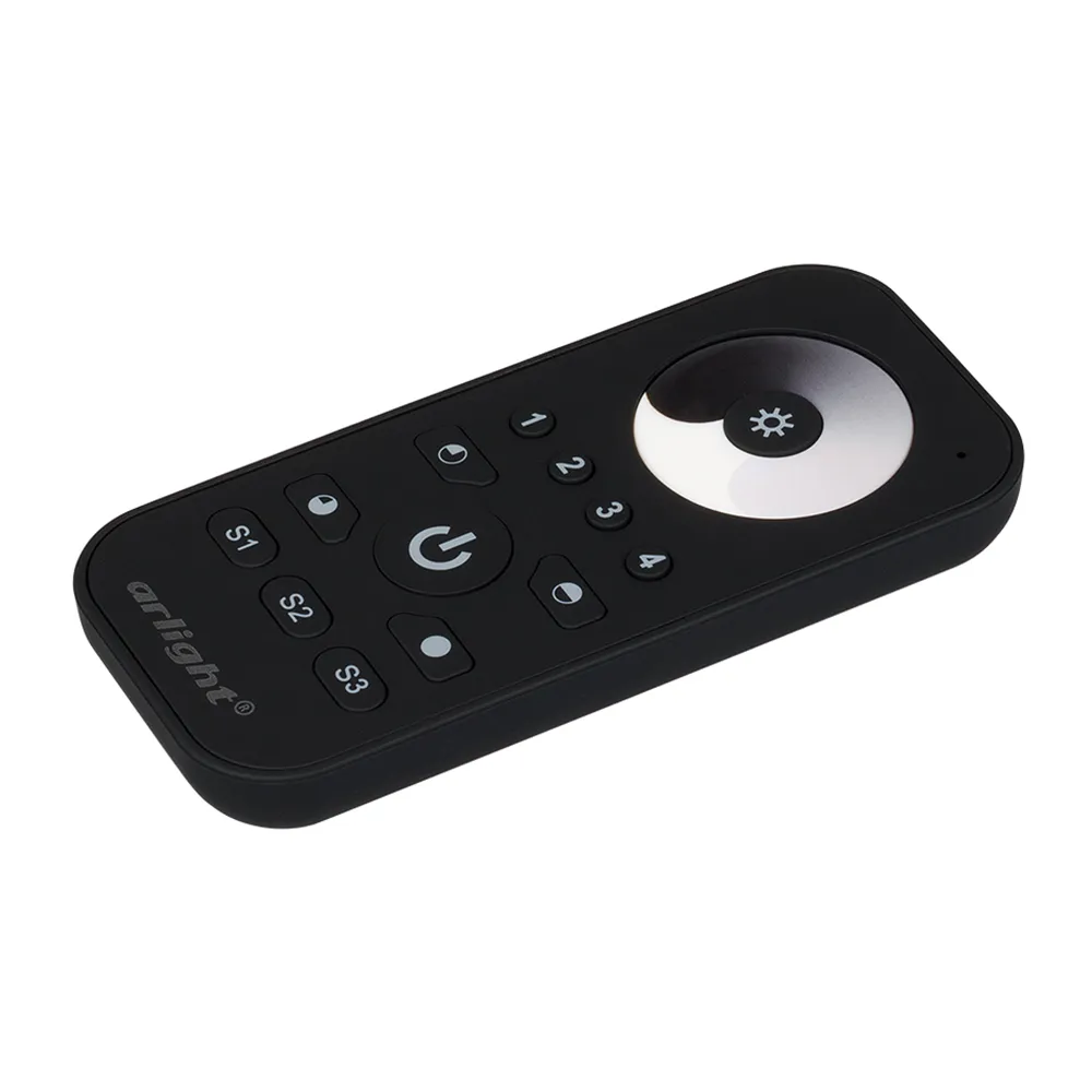 Мультизонный пульт RF (868MHz) с сенсорным кольцом выбора яркости, для белых лент, 4 зоны управления. Черный матовый корпус. Используется с контроллерами серии SR-1009x. Размеры 119х54х10 мм. Держатель в комплекте. Аналогичные по дизайну пульты в серии SMART (устройства не совместимы).