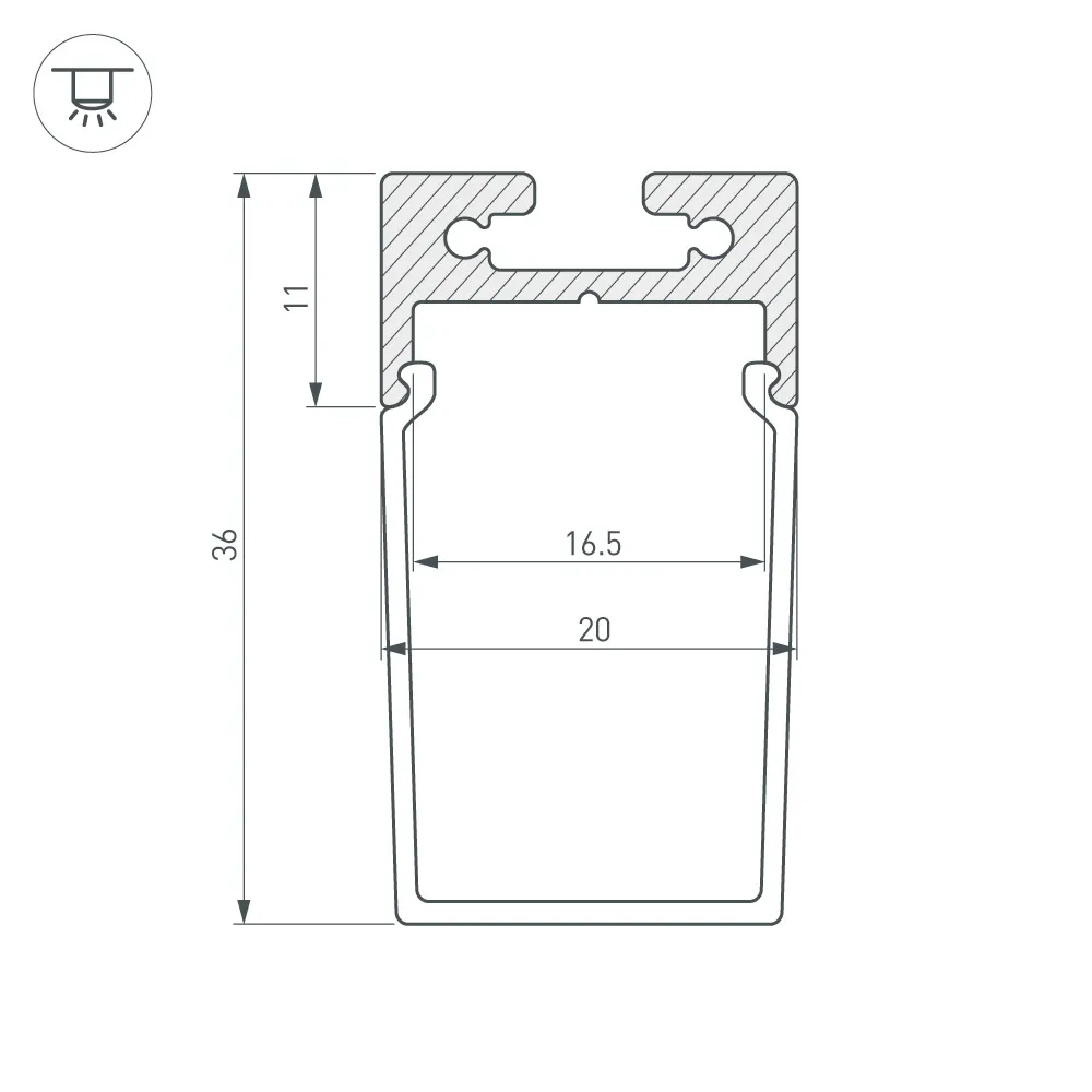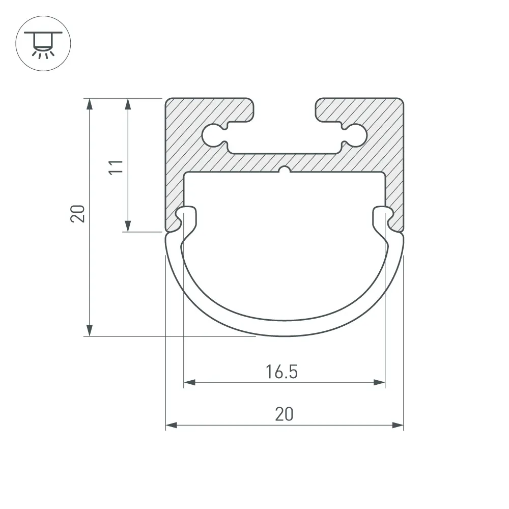 Компактный подвесной/накладной профиль 20х11мм. Анодированный алюминий. Длина 2000мм. Цена за 1м. Экраны, заглушки отдельно. Для светодиодных лент шириной до 15мм. Заменяется на арт.023720