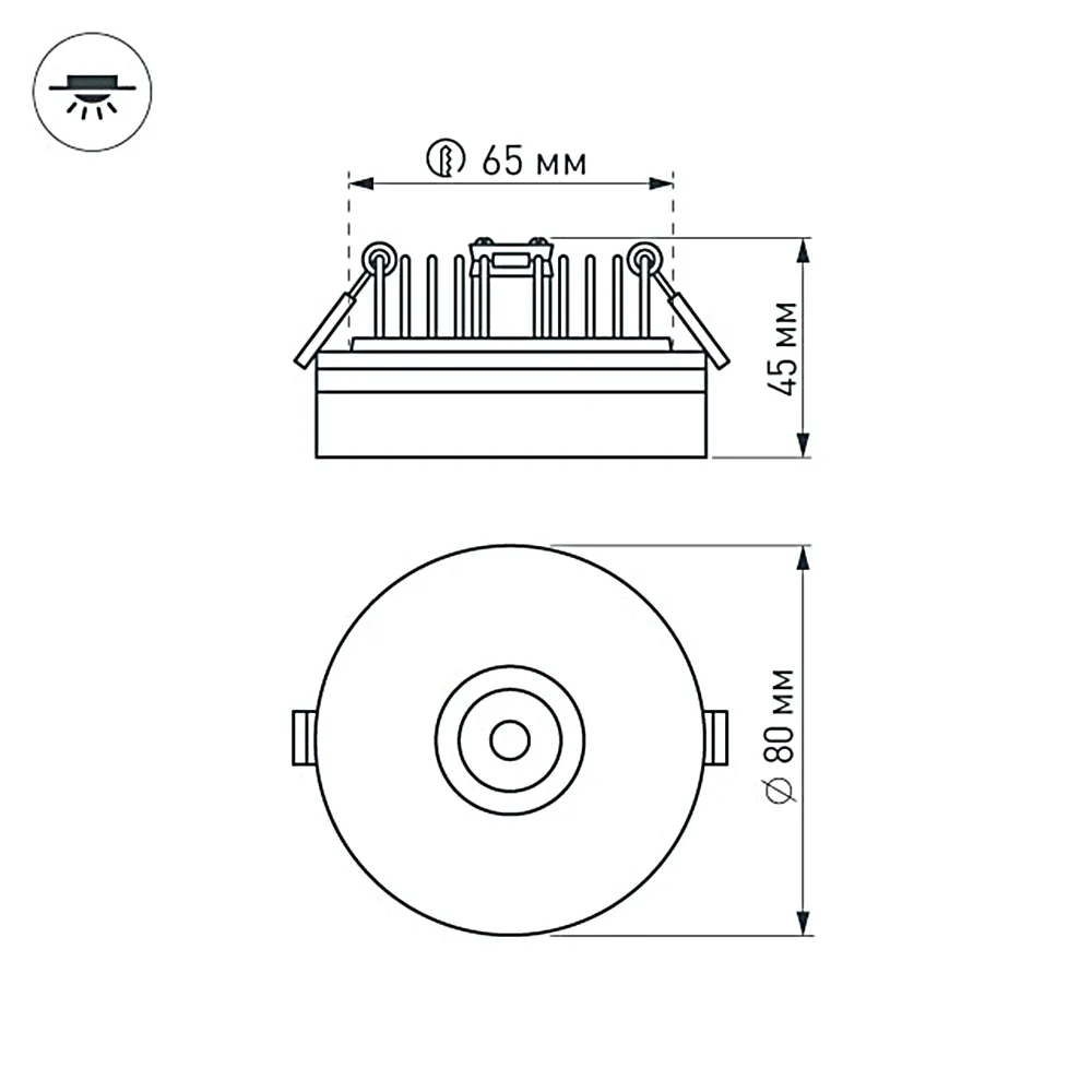 Встраиваемый светильник цилиндр, направленное + рассеянное свечение, 2x3Вт, корпус белый алюминий + глянцевый акрил. Цвет БЕЛЫЙ 6000K, св.поток 480лм, CRI(Ra)>80, угол 24° + 120°. Размер Ф80x45мм, установка в отверстие Ф65мм. Питание 110-240VAC, 6Вт, 300mA 18-22V, драйвер в комплекте.