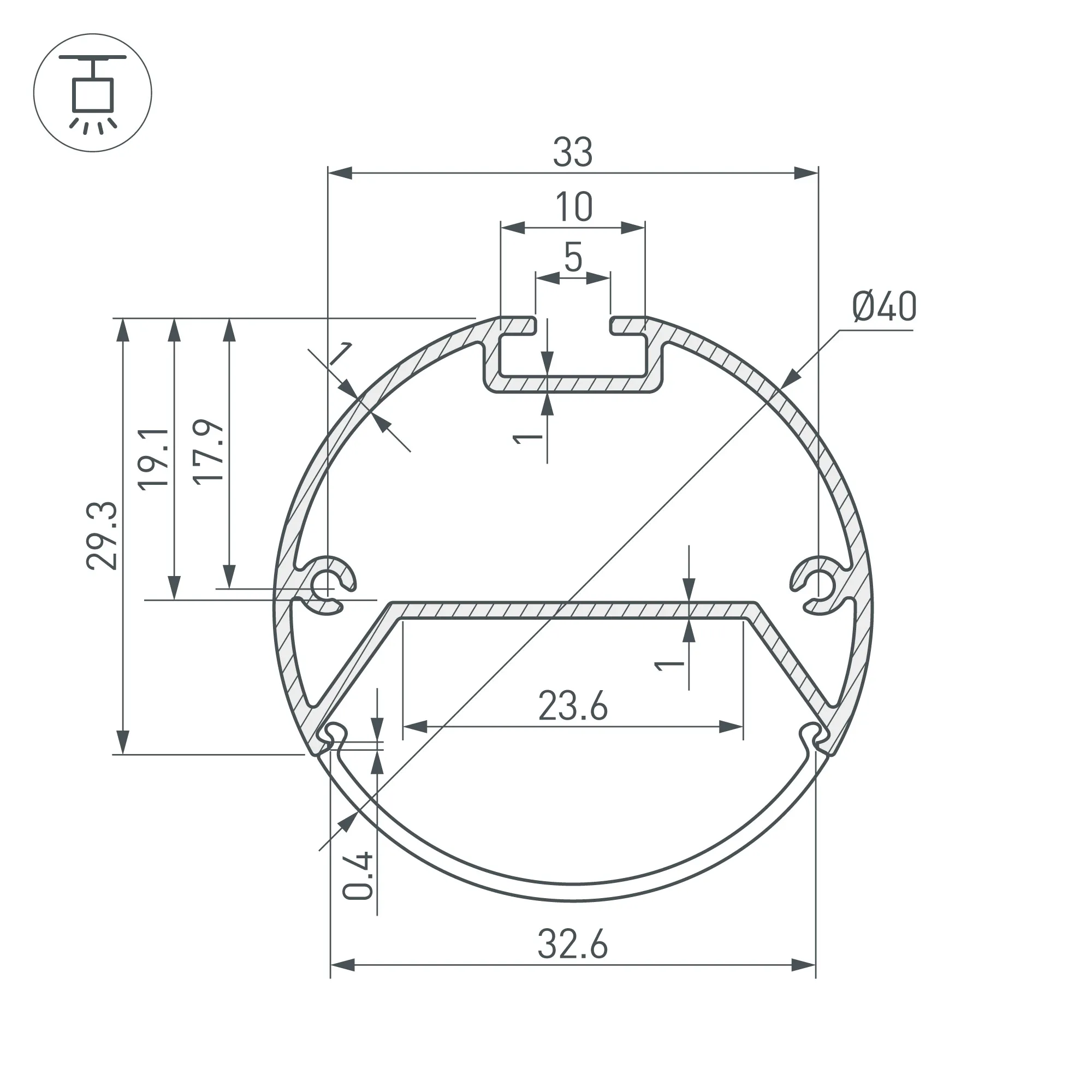 Профиль с экраном SL-ROUND-D40-2500 ANOD+OPAL (Ar…