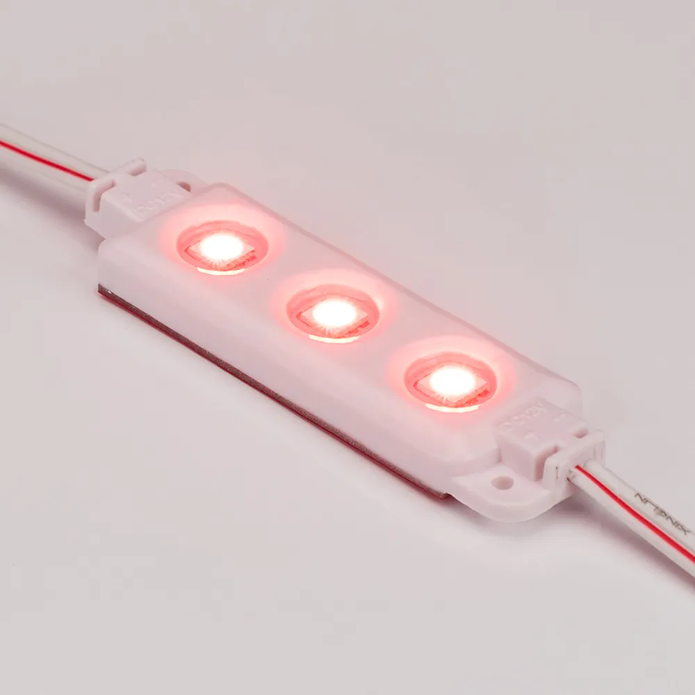 Герметичный светодиодный модуль IP65, КРАСНЫЙ 625 нм, напряжение 12 В, мощность 0.72 Вт, св. поток 15 лм, 3 светодиода SMD 5060, угол 120°. 20 шт на проводе, расстояние между центрами модулей 143.2 мм, длина провода между модулями 75 мм, рекомендуемая глубина установки 50–150 мм. Размер 68,2х19.5х5.7 мм. Гарантия 3 года.