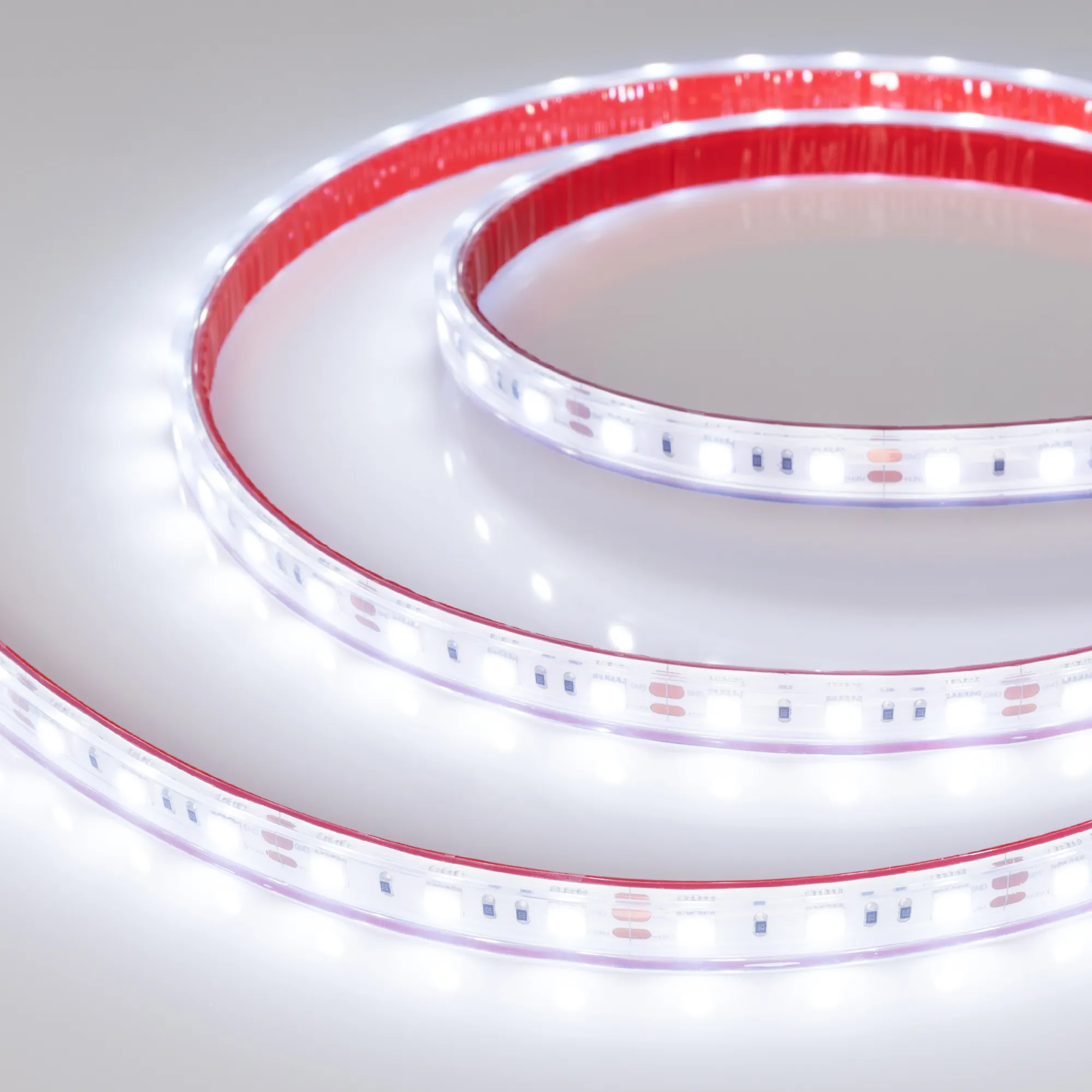 Поставка под заказ от 1000 м. Герметичная лента IP67 (силикон, экструзия), светодиоды smd 5060, 60шт/м (300шт на 5м), белая плата 10мм, скотч 3М. Цвет ХОЛОДНЫЙ 7700-9600K. Питание 12V, мощность 14.4 Вт/м (72 Вт на 5м), угол 120°, цветопередача CRI>85. Размеры 5000х12x5мм. Мин.отрезок 50мм, 3 светодиода. Цена за 1м.