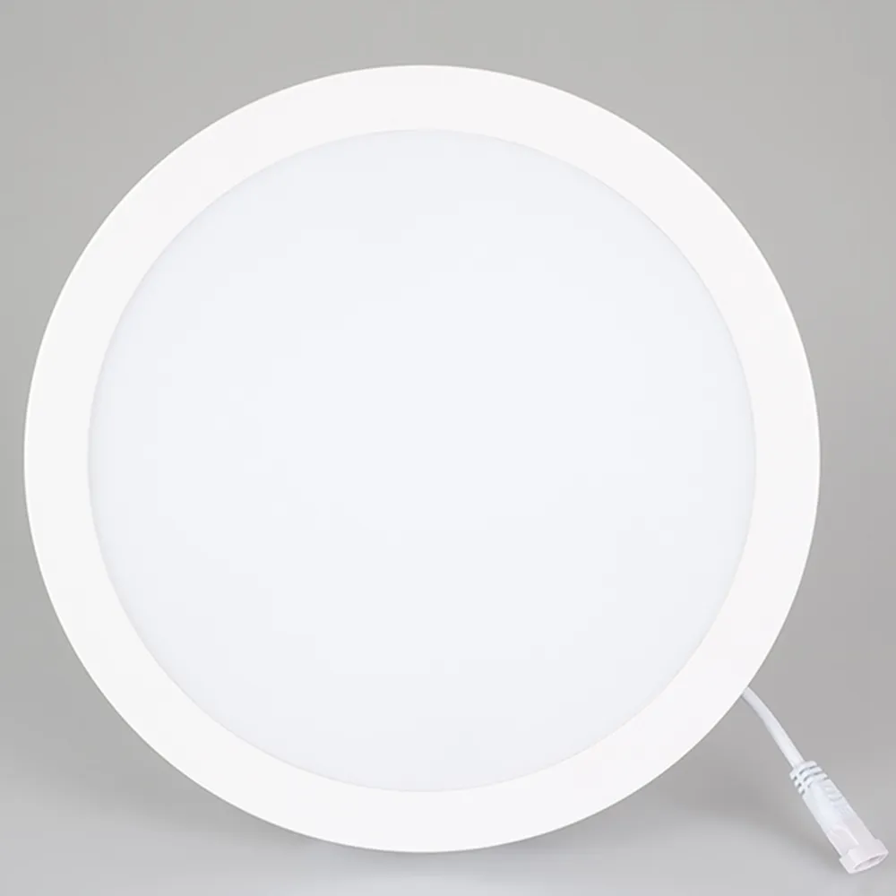 Светодиодная панель 24Вт, корпус белый IP40, круглый. Цвет БЕЛЫЙ 6000K, св.поток 1920-2160лм, CRI(Ra)>80, угол 100°. Размер Ф225x26 мм, установка в отверстие 205 мм. Питание AC 180-240V, 24Вт, DC600mA 36...44V, драйвер в комплекте.