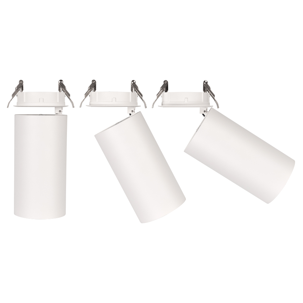 Корпус встраиваемый откидной для светильника POLO-R95 (1 часть из 3). Материал корпуса белый алюминий. Размер DxH Ø95x220мм, отверстие для установки Ø90мм. Встроенный драйвер PRI:220-240VAC, SEC:DC 600mA 30-43V 25Вт.