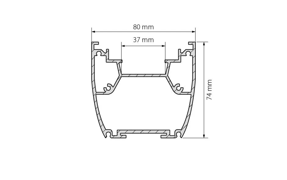 Стекло (экран) вставляется в пазы. Алюминиевый анодированный корпус до 80Вт/м для изготовления прожекторов и светильников, с отсеком для блока питания,для лент и линеек шириной до 37мм. Заглушки и крепления (под DIN-рейку) поставляются отдельно. Размер 80х74х1500мм. Цена за 1м.