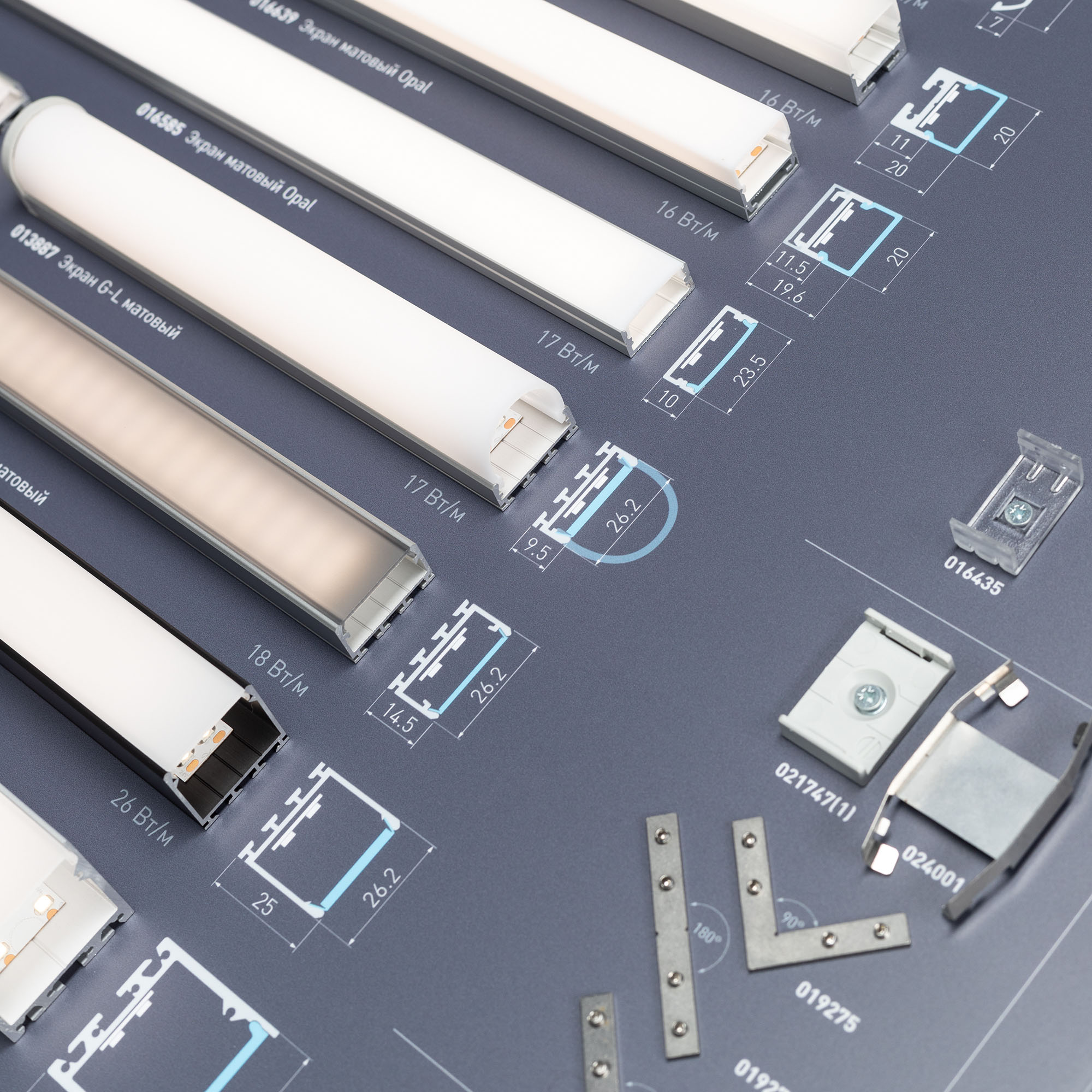 Накладные алюминиевые профили серий S-LUX, ALU, ARH с подсветкой. Материал - алюмобонд.