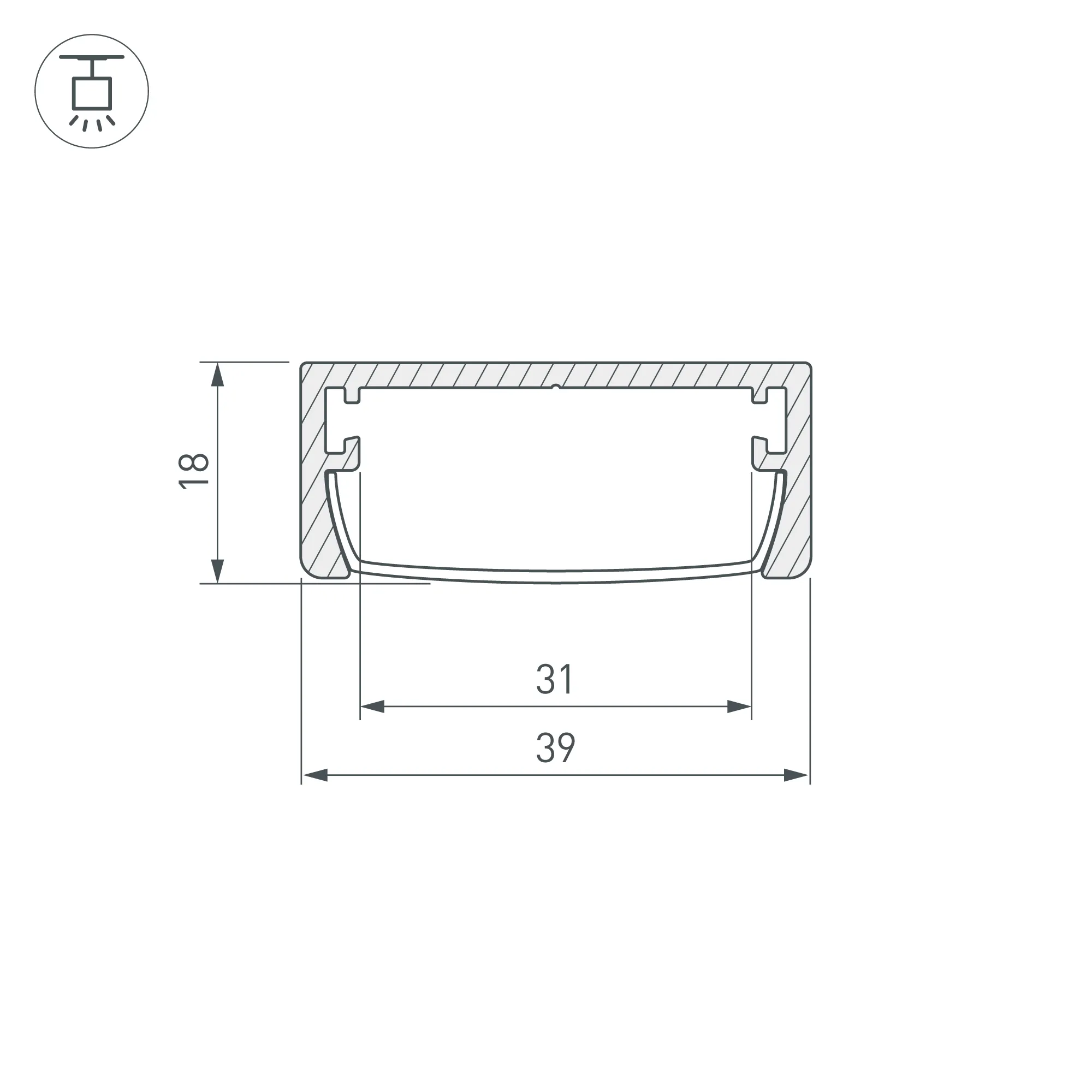 Подвесной профиль для лент шириной до 31мм. Подходит плоский экран ARH-WAVE-2000, заглушки, держатель (отдельно). Размер: 2000х39х17,7 мм. Цена за 1м. Для светодиодных лент шириной до 31мм.