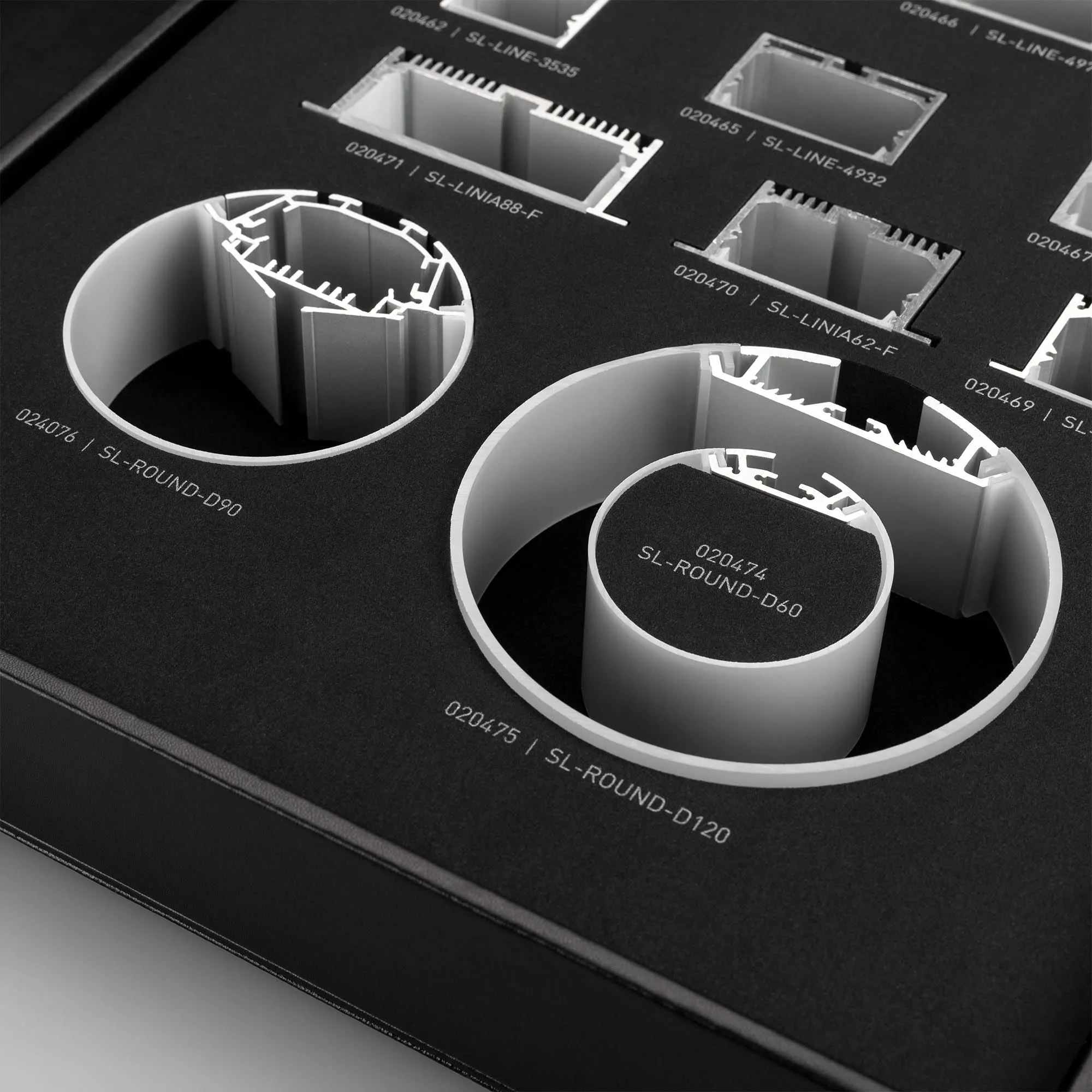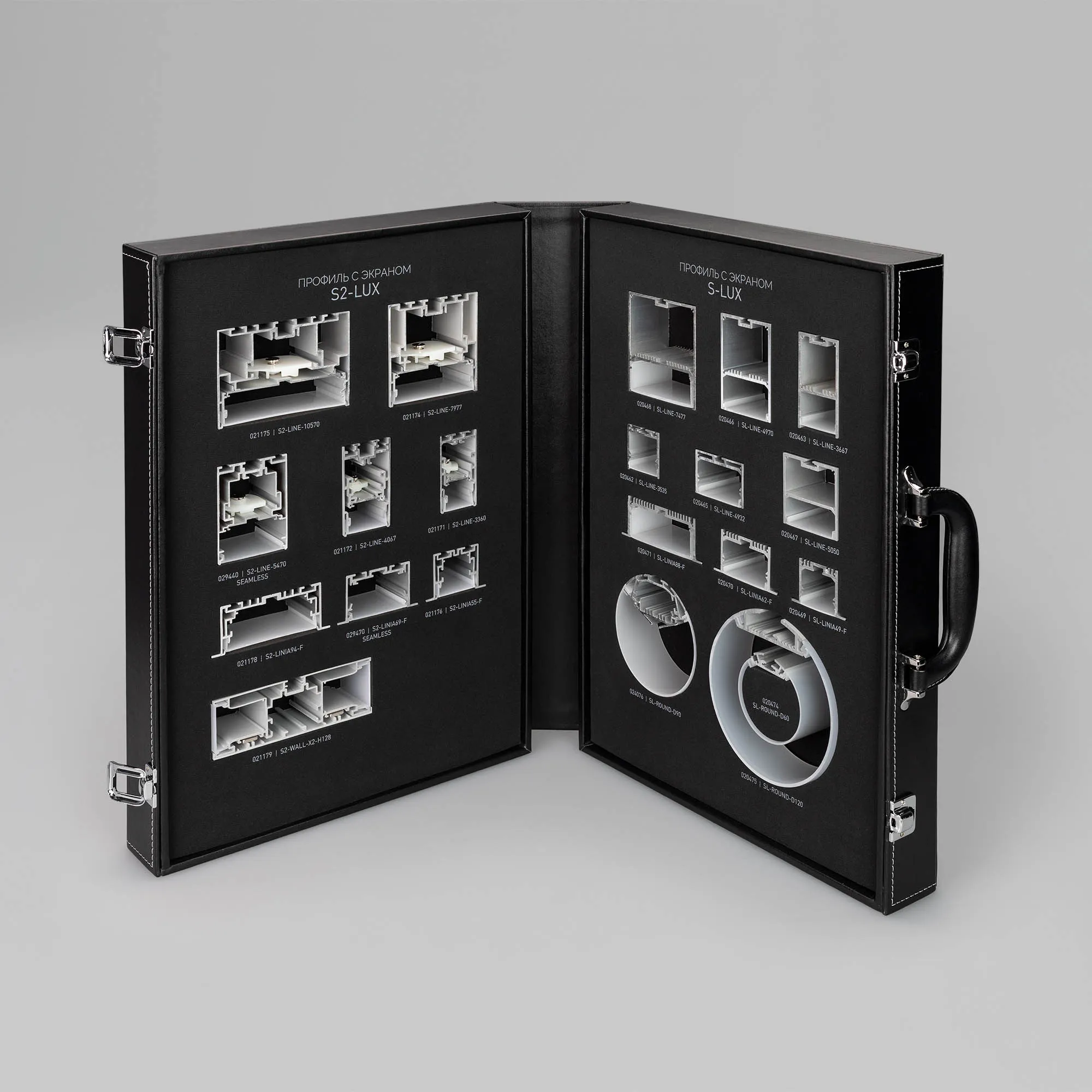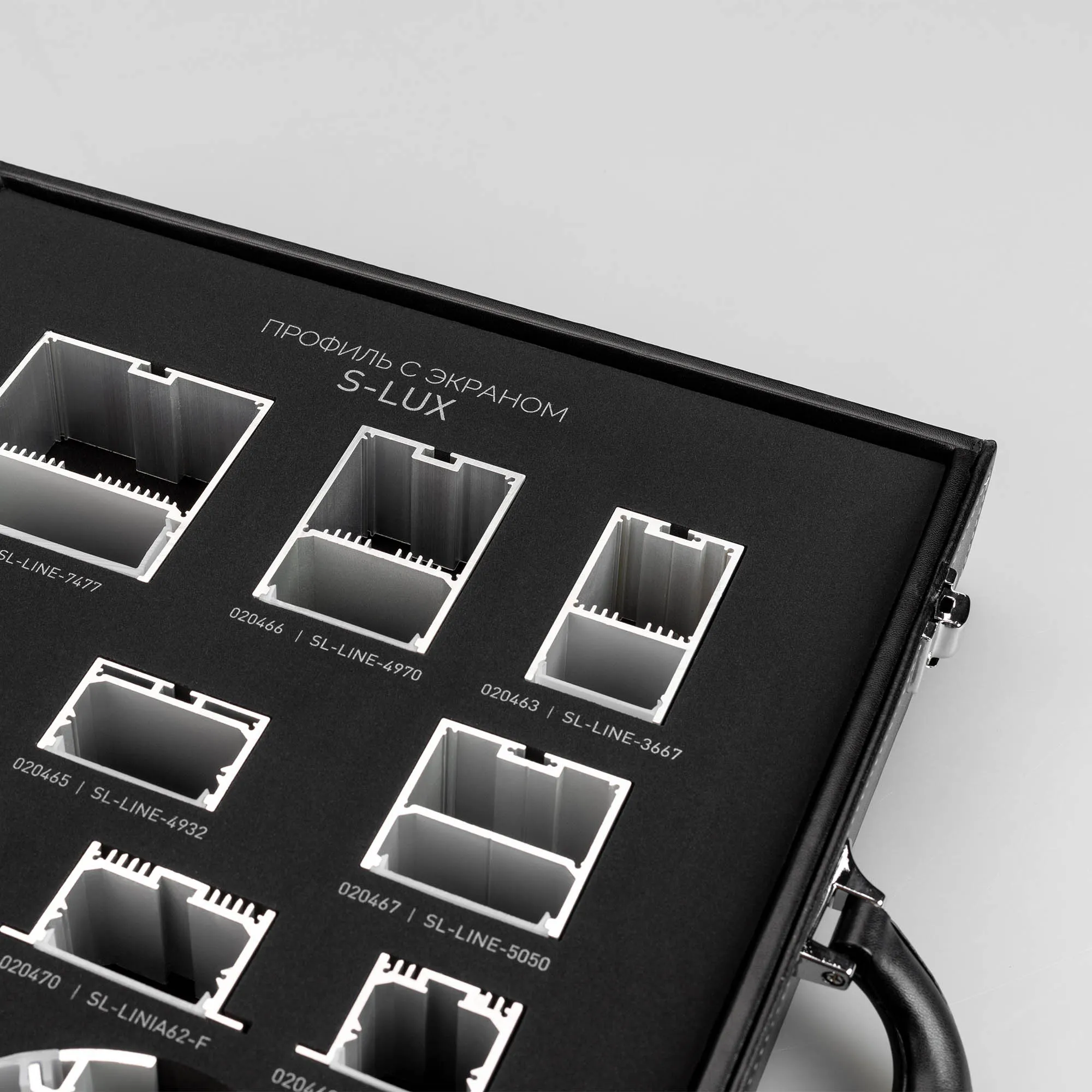 Демонстрационный набор профилей серий S2-LINE, S2-LINIA, S2-WALL, SL-LINE, SL-LINIA, SL-ROUND. Включает отрезки профилей с экраном.