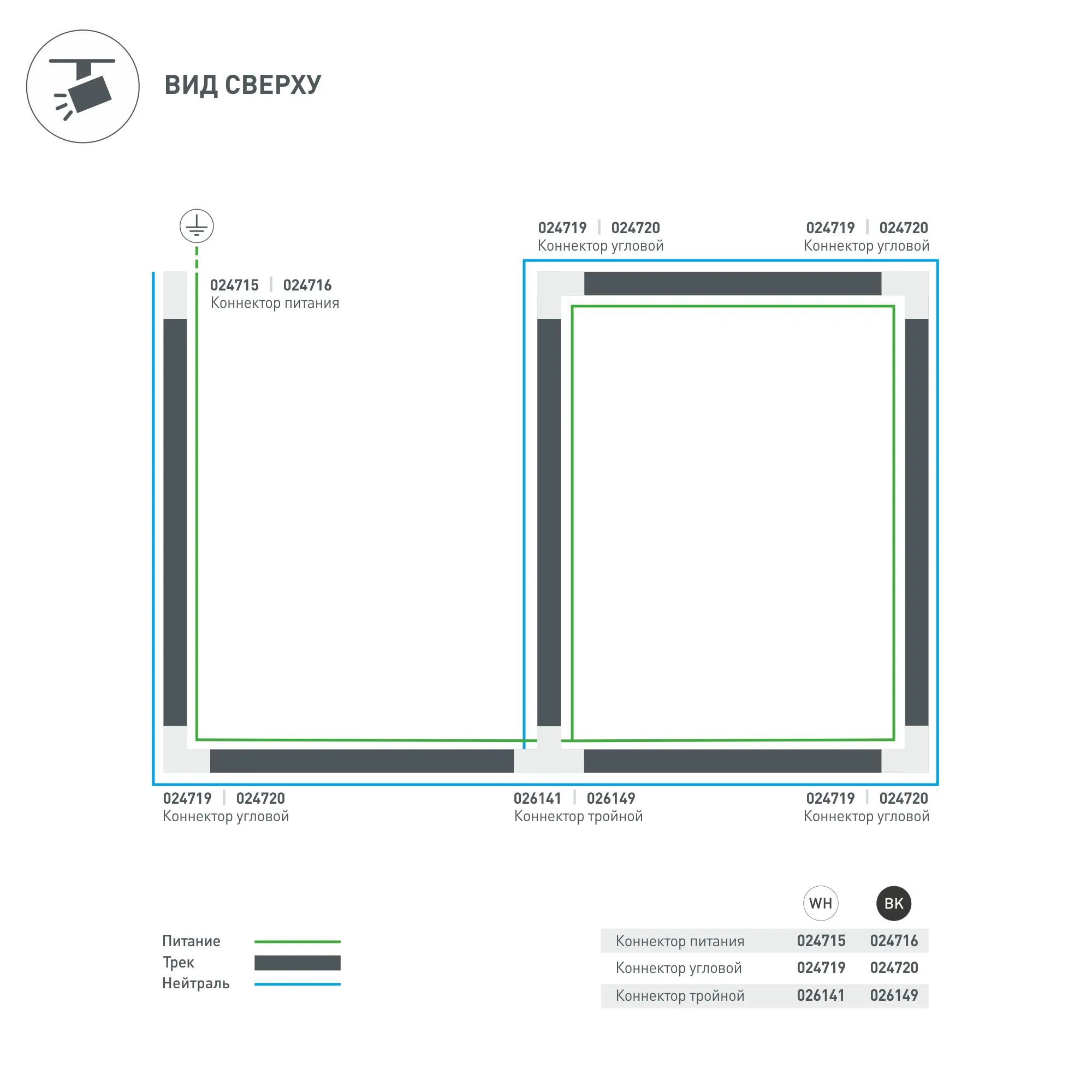 Угловой коннектор 90 градусов, питание по внутренней стороне. Цвет белый. 99х99х33 мм с контактами, 66х66х33 мм без контактов. При использовании с треками и аксессуарами другой серии возможно отличие по цвету.