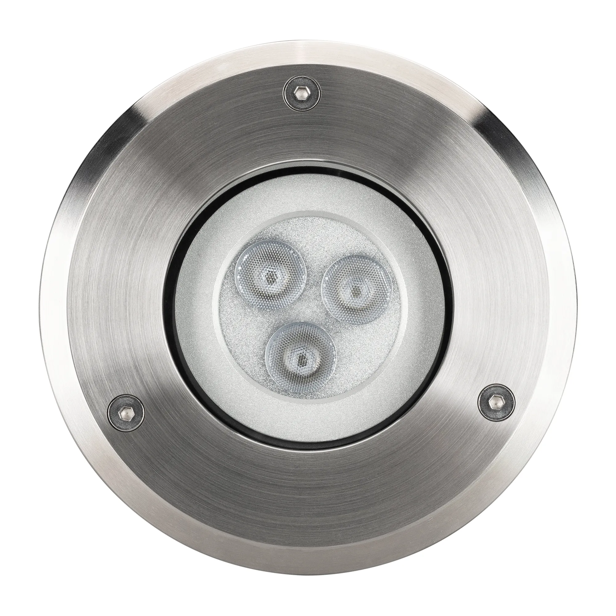 Встраиваемый светодиодный светильник для грунта и пола с возможностью регулировки направления луча вручную. Мощность 9Вт, цвет RGB. Световой поток 310лм, угол 23°, наклон луча изменяемый 20°. Круглый влагозащищенный корпус IP67, нержавеющая сталь. Экран закалённое стекло. Питание DC24V, 9Вт. Размер DxH Ø134x76мм. Установка в отверстие DxH Ø120x105мм.