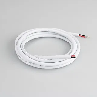 Провод питания для гибкого неона MOONLIGHT. 2 проводника, калибр проводника 20AWG, материал проводника - лужёная медь, внешний диаметр 4,5 мм. Внешняя оболочка - ПВХ белого цвета. Длина кабеля в отрезке - 2000 мм.