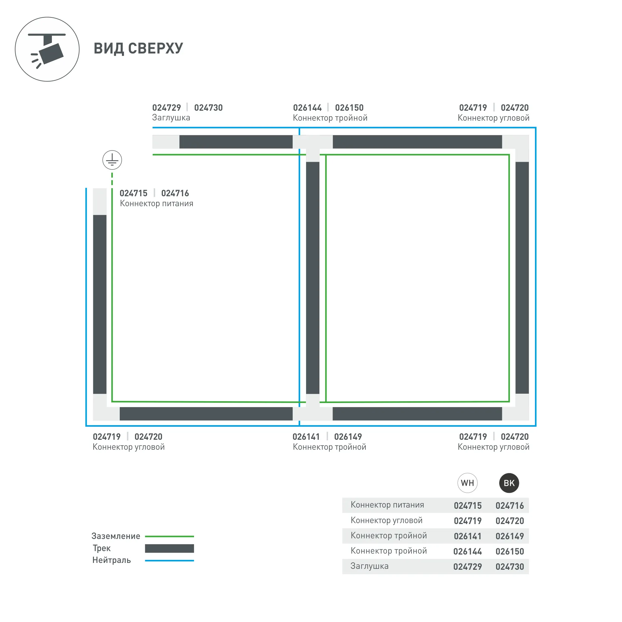 Направление соединений внутри/справа (определение необходимого коннектора происходит относительно контакта заземления системы). 166х99х33 мм с контактами, 99х66х33 мм без контактов. При использовании с треками и аксессуарами другой серии возможно отличие по цвету.
