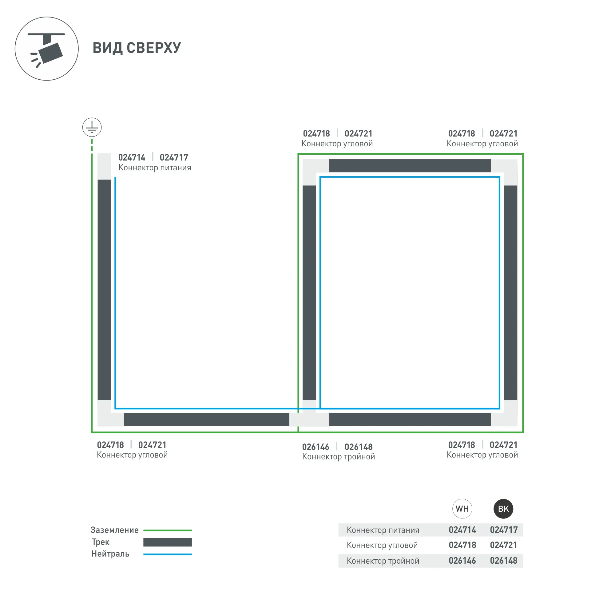 Направление соединений снаружи/справа (определение необходимого коннектора происходит относительно контакта заземления системы). 166х99х33 мм с контактами, 99х66х33 мм без контактов. При использовании с треками и аксессуарами другой серии возможно отличие по цвету.