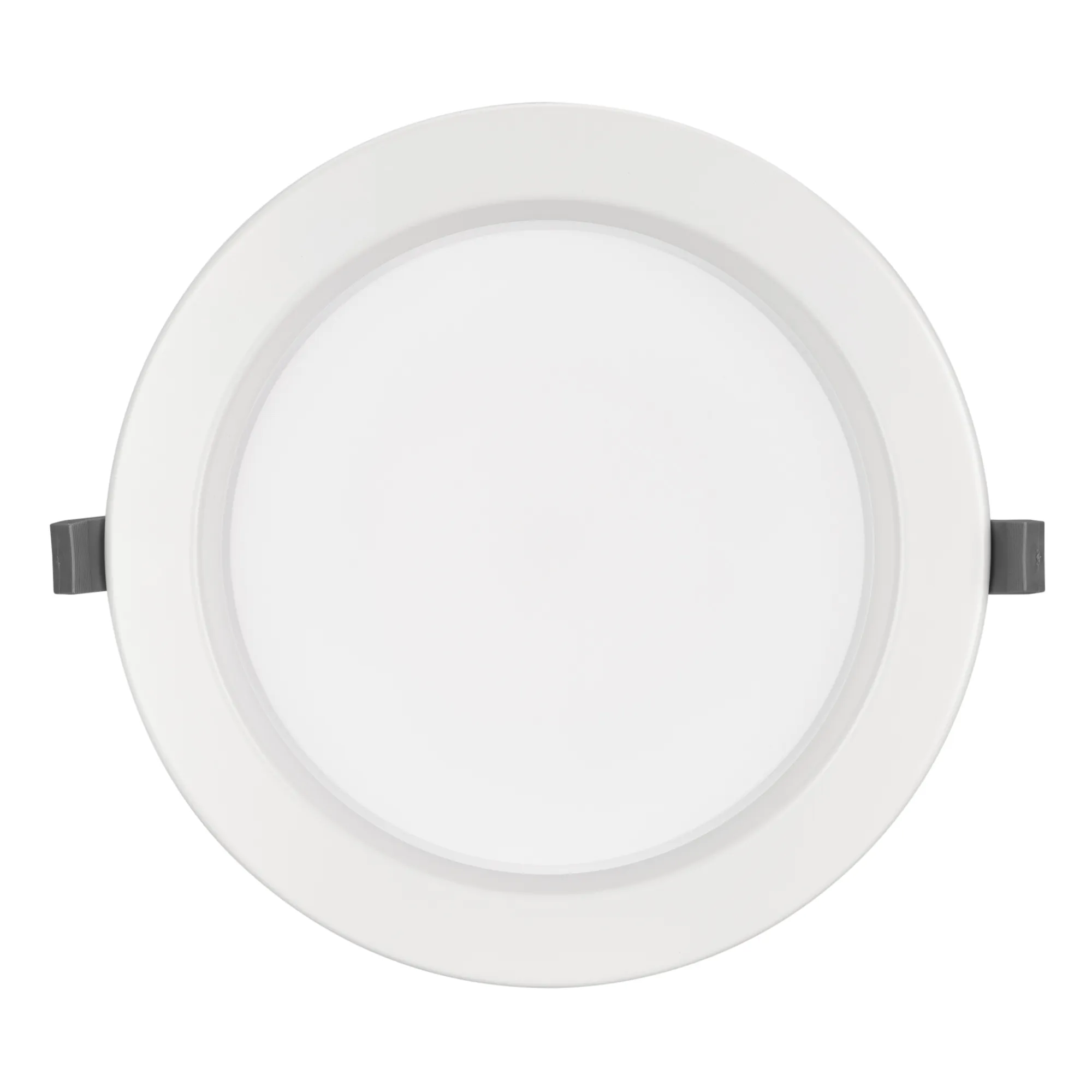 Встраиваемый светильник "Даунлайт" 30Вт. Цвет свечения ТЕПЛЫЙ БЕЛЫЙ 3000К. Световой поток 2610лм, угол 90°, CRI>80. Белый корпус. Питание AC220-240V. Габариты: Ø230х75мм, врезное отверстие Ø192-210мм. Драйвер в комплекте (25.5-43V, 700mA).