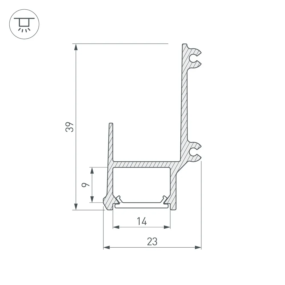 Алюминиевый анодированный профиль для светодиодных лент и линеек до 12 мм. Для подсветки стен и потолков из гипсокартона толщиной 16 мм. Отдельно поставляются матовые и прозрачные экраны.