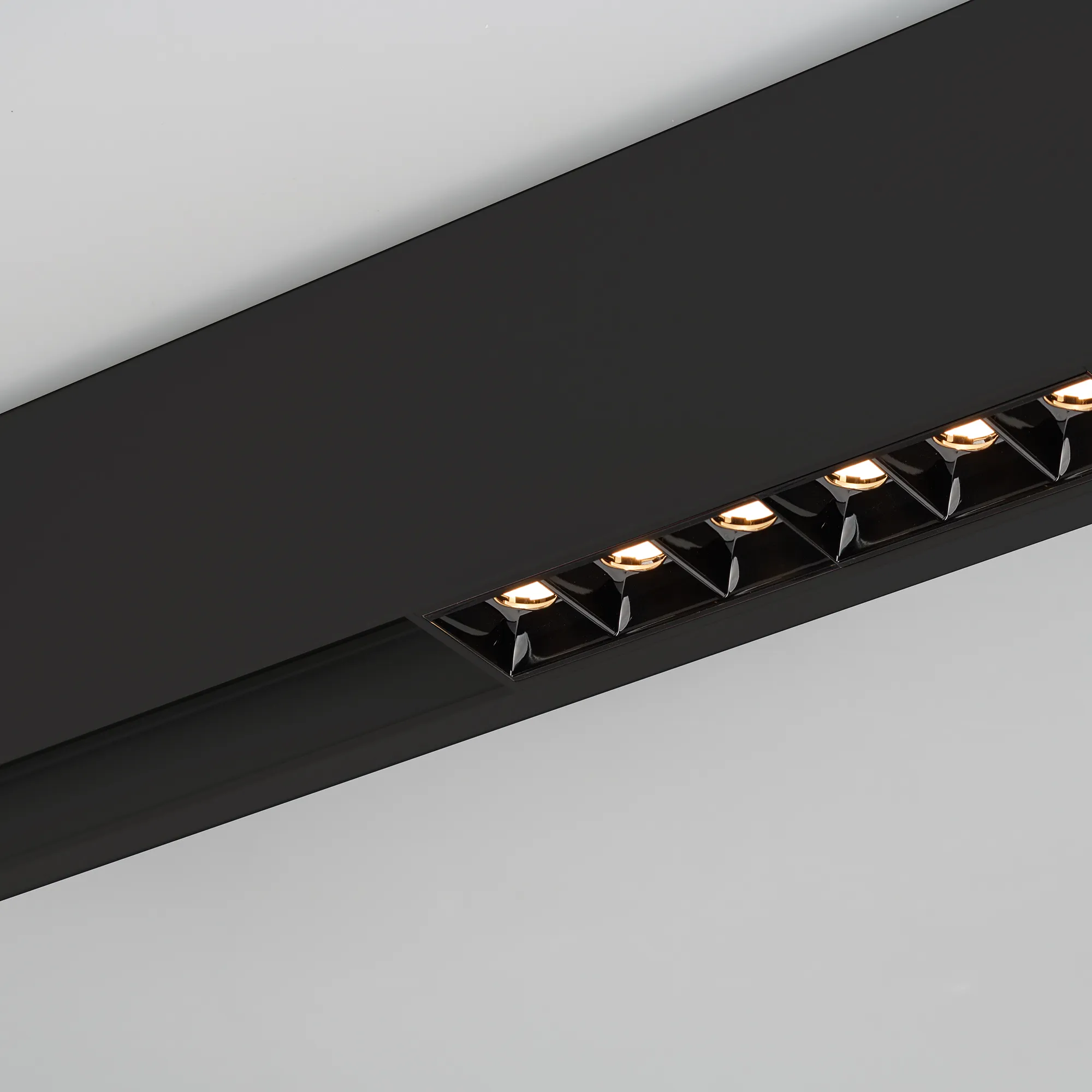 Светильник для магнитных треков шириной 45мм, 18Вт. Цвет свечения ТЕПЛЫЙ 3000K, световой поток 1200лм, угол 15°, CRI>90. Корпус прямоугольный, металл, цвет черный, IP20. Размеры LxWxH 481x35x43мм. Входное напряжение DC24V, мощность 18Вт. Драйвер DС24V/AC230V поставляется отдельно. Диммируется только с 026407(1), 027633.