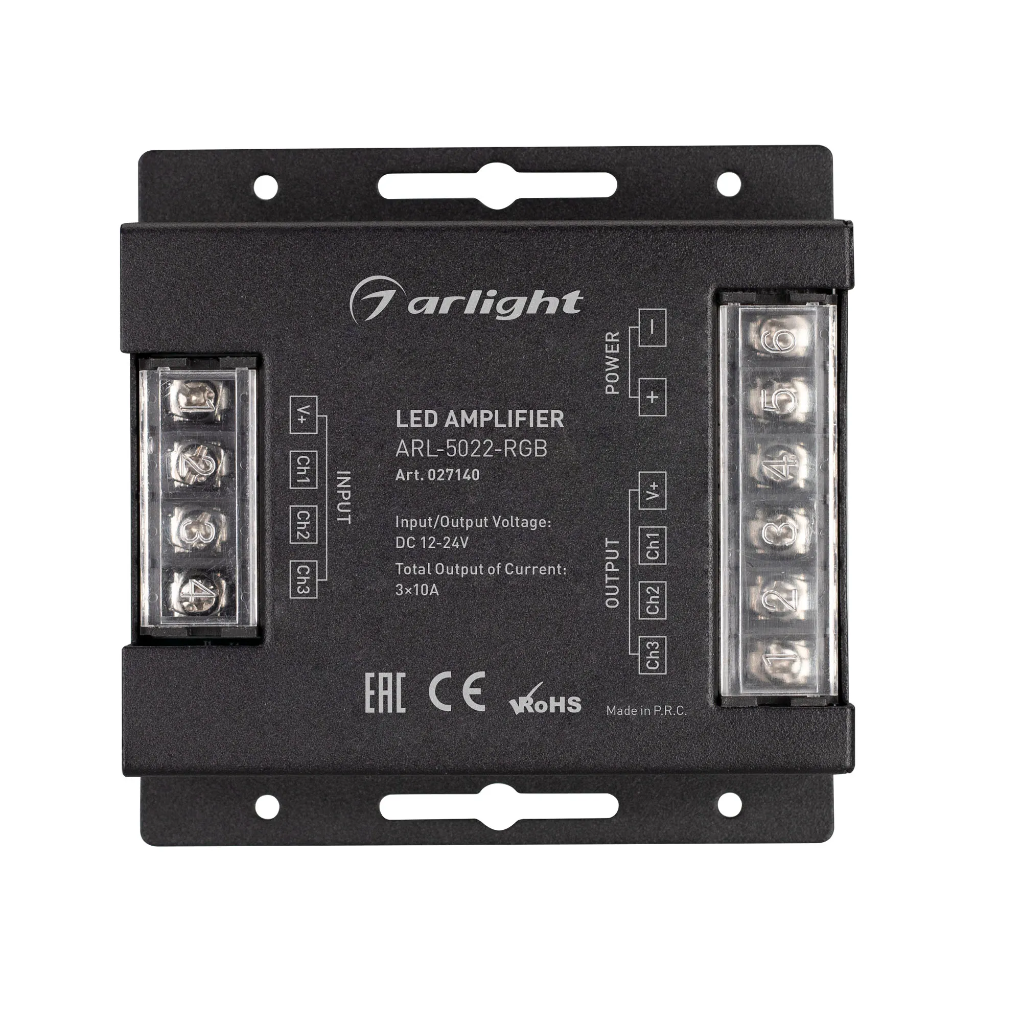В магазине Мельковский Свет Вы можете купить "Усилитель ARL-5022-RGB (12-24V, 3x10A, 360-720W) (Arlight, IP20 Металл, 3 года)"