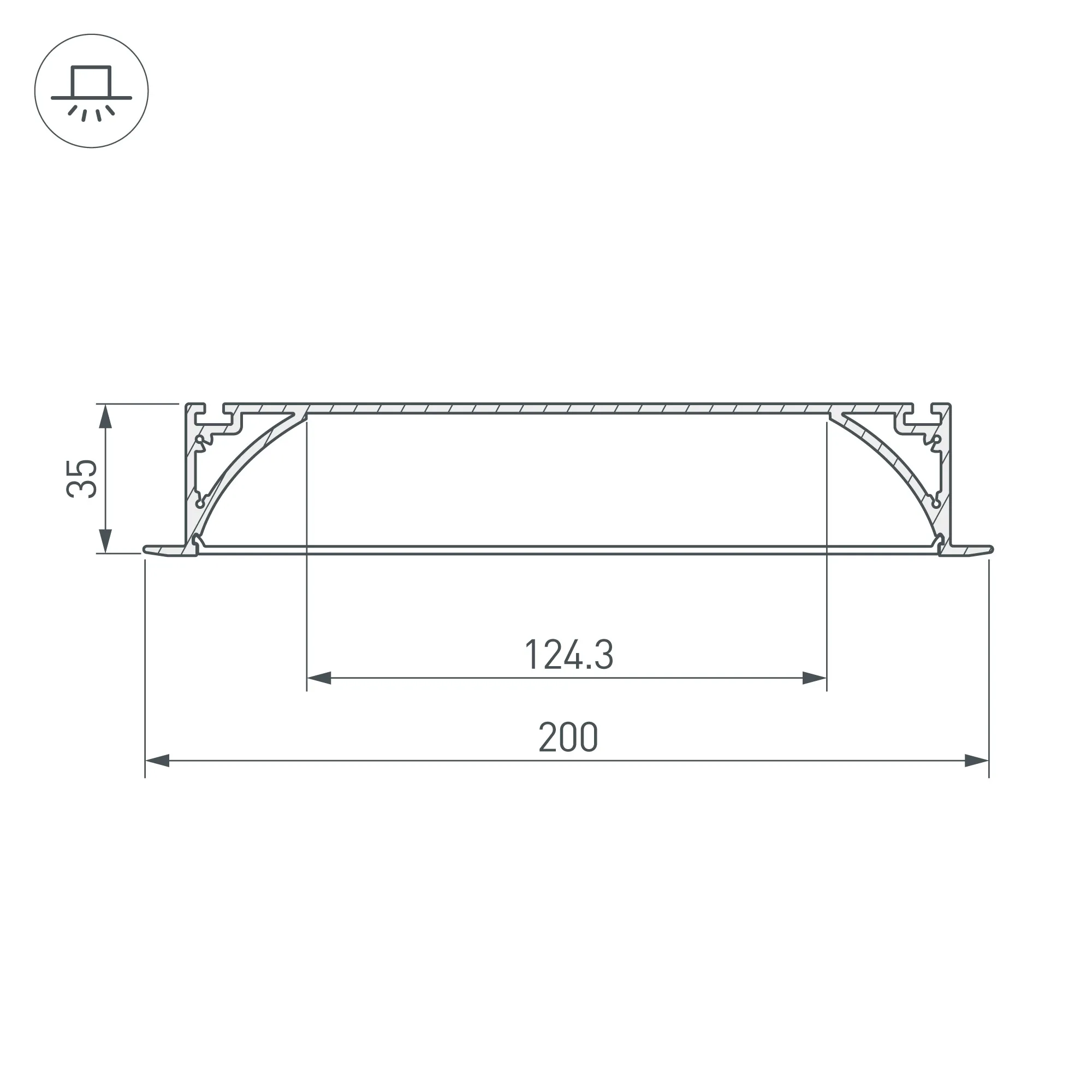 Комплект с экраном. Алюминиевый анодированный встраиваемый профиль для светодиодных лент и линеек. Габаритные размеры (L×W×H): 2000x200x35 мм. Ширина встраиваемой части - 180 мм. Ширина площадки для ленты 124,3 мм. Аксессуары приобретаются отдельно.
