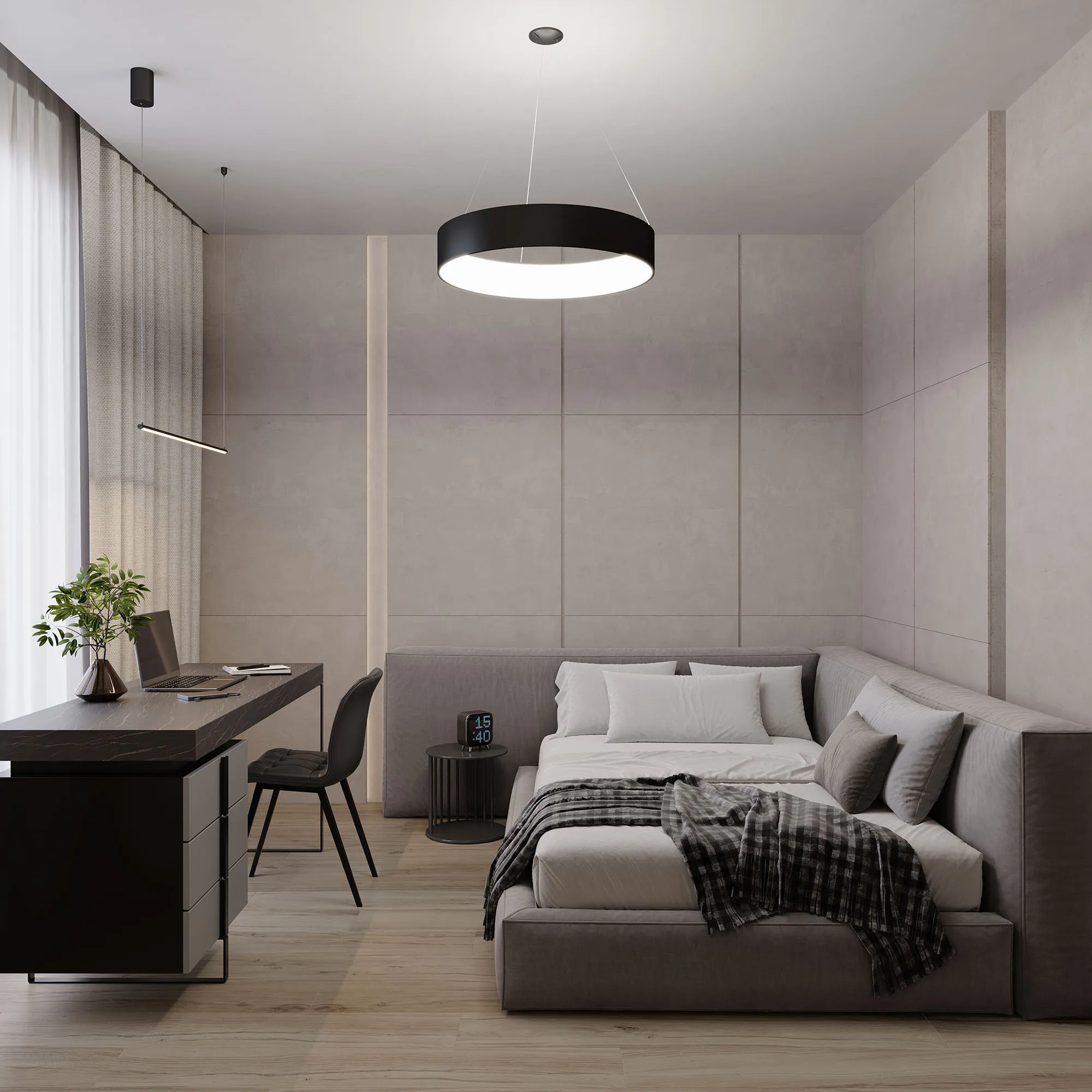 Подвесной светильник 42Вт, черный круглый корпус. Цвет ДНЕВНОЙ БЕЛЫЙ 4000K, св.поток 2400 лм, CRI(Ra)>80, угол 120°. Размер светильника Ф600x110мм. Максимальная длина подвеса 1200мм. Питание AC220-240V, 42Вт, драйвер встроенный (30-40V, 1050 mA).