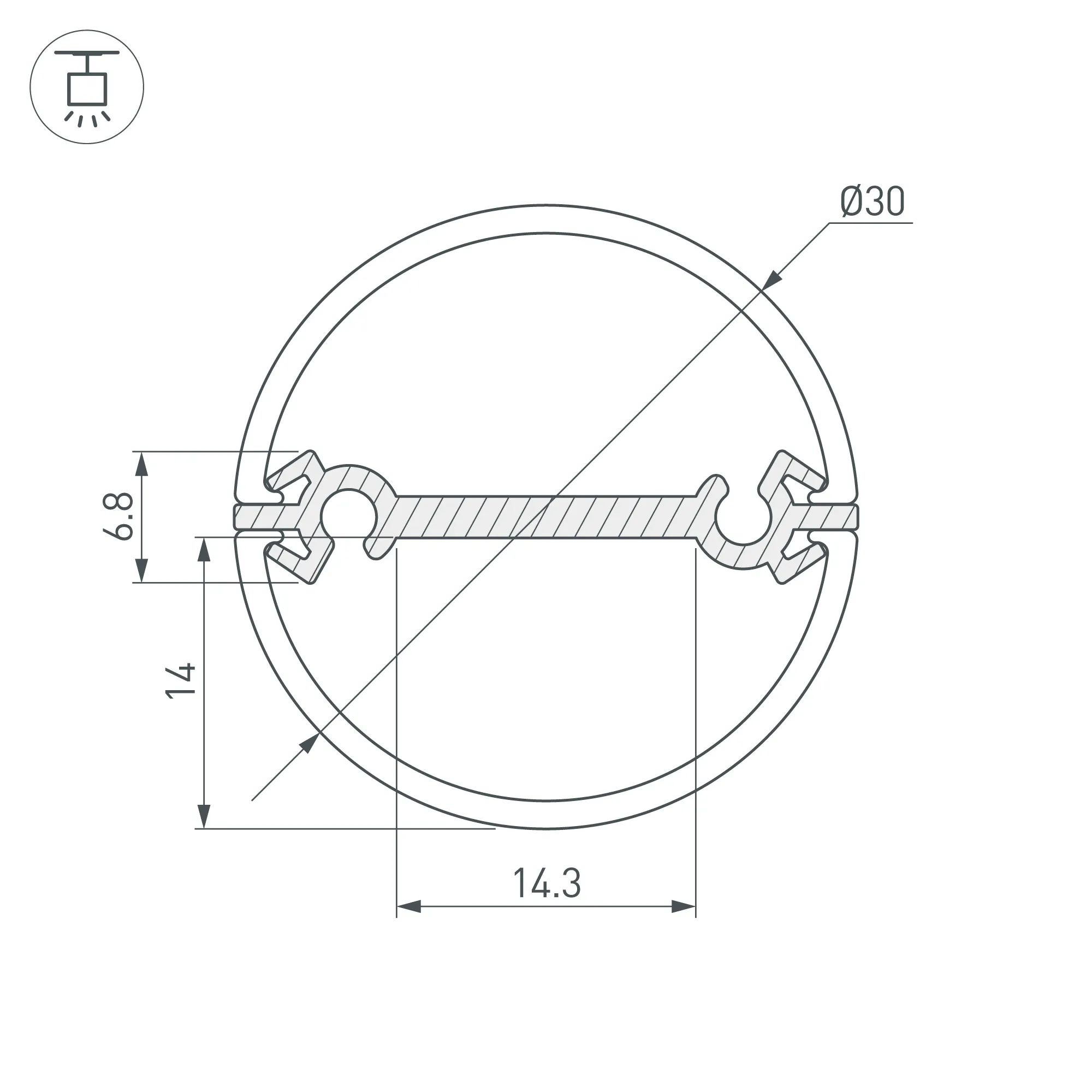 Профиль ROUND-D30-DUAL-2000 ANOD (Arlight, Алюминий)