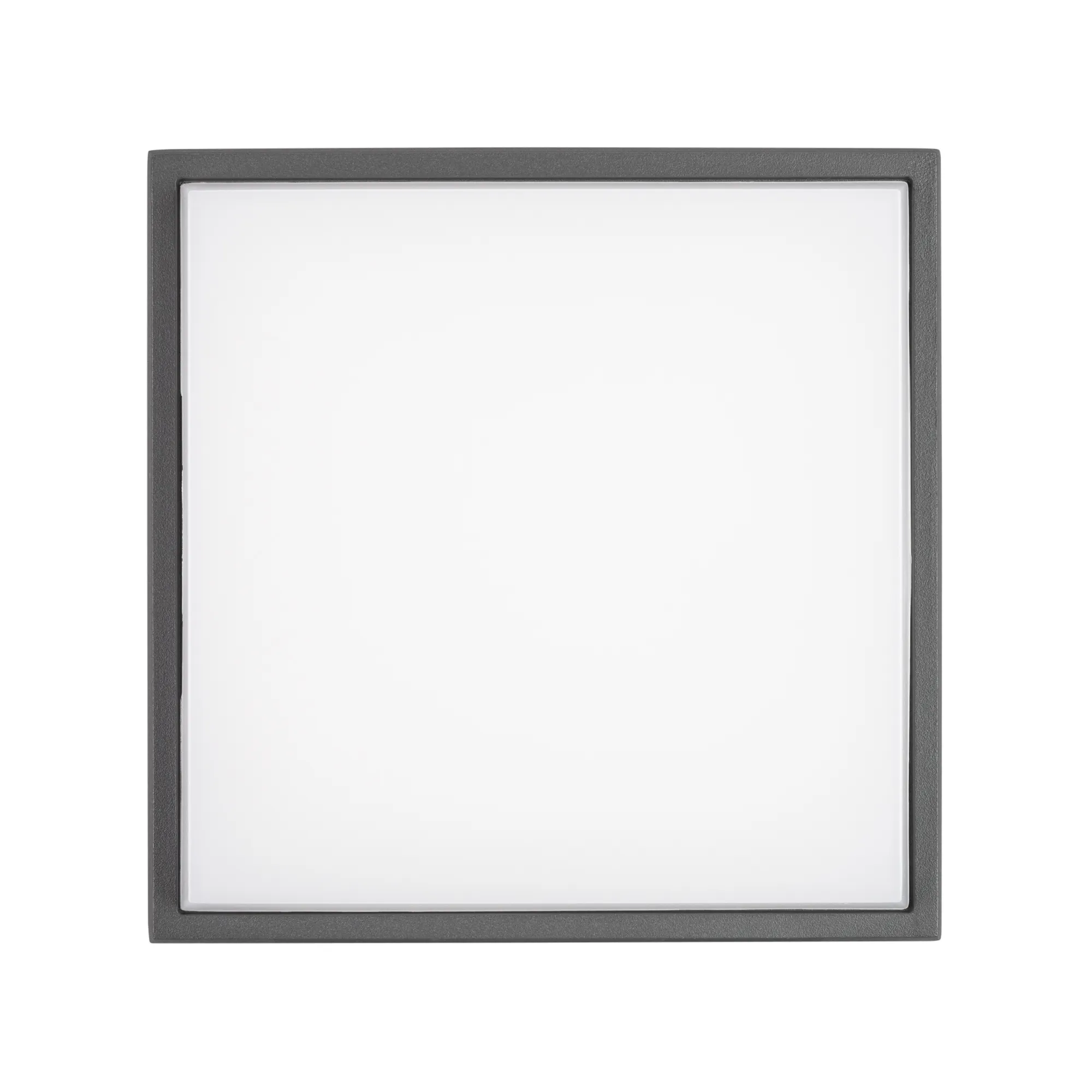 Накладной светильник 10Вт, серый алюминиевый корпус, матовый рассеиватель из поликарбоната. Цвет ТЕПЛЫЙ БЕЛЫЙ 3000K, св.поток 790лм, CRI(Ra)>80, угол 110°. Размер 175x175x45мм. IP54. Питание AC220-240V, 10Вт, встроенный драйвер.