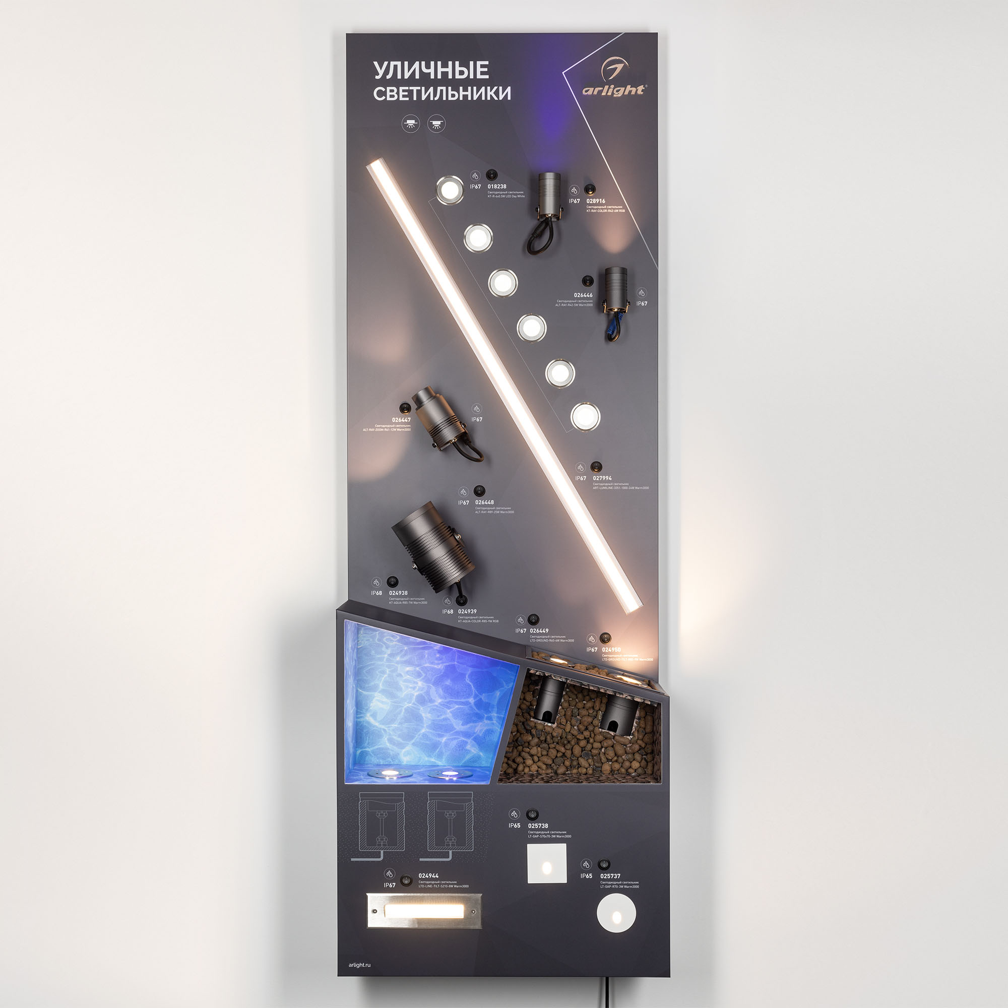 В магазине Мельковский Свет Вы можете купить "Стенд Cветильники уличные ARLIGHT-E22-1760x600mm (DB 3мм, пленка, подсветка) (Arlight, -)"