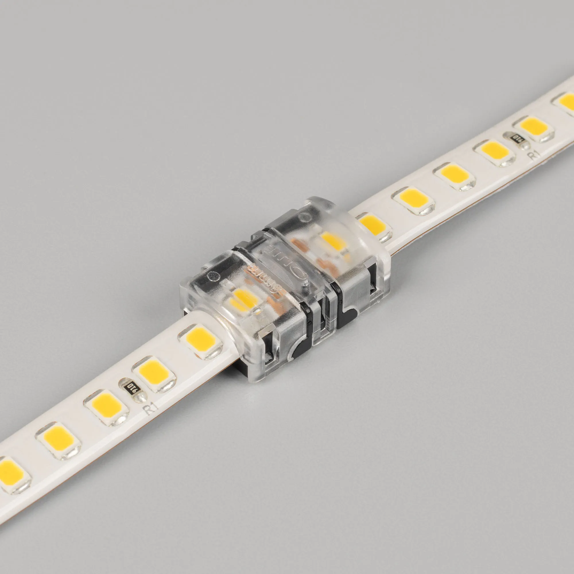 Одиночный коннектор для соединения 2-х отрезков герметичных (IP54/IP65) светодиодных одноцветных лент SE (заливка силиконом сверху) шириной 8 мм. Материал - пластик. Максимальный допустимый ток 3 А, напряжение 3-24 В. Цена за 1шт.