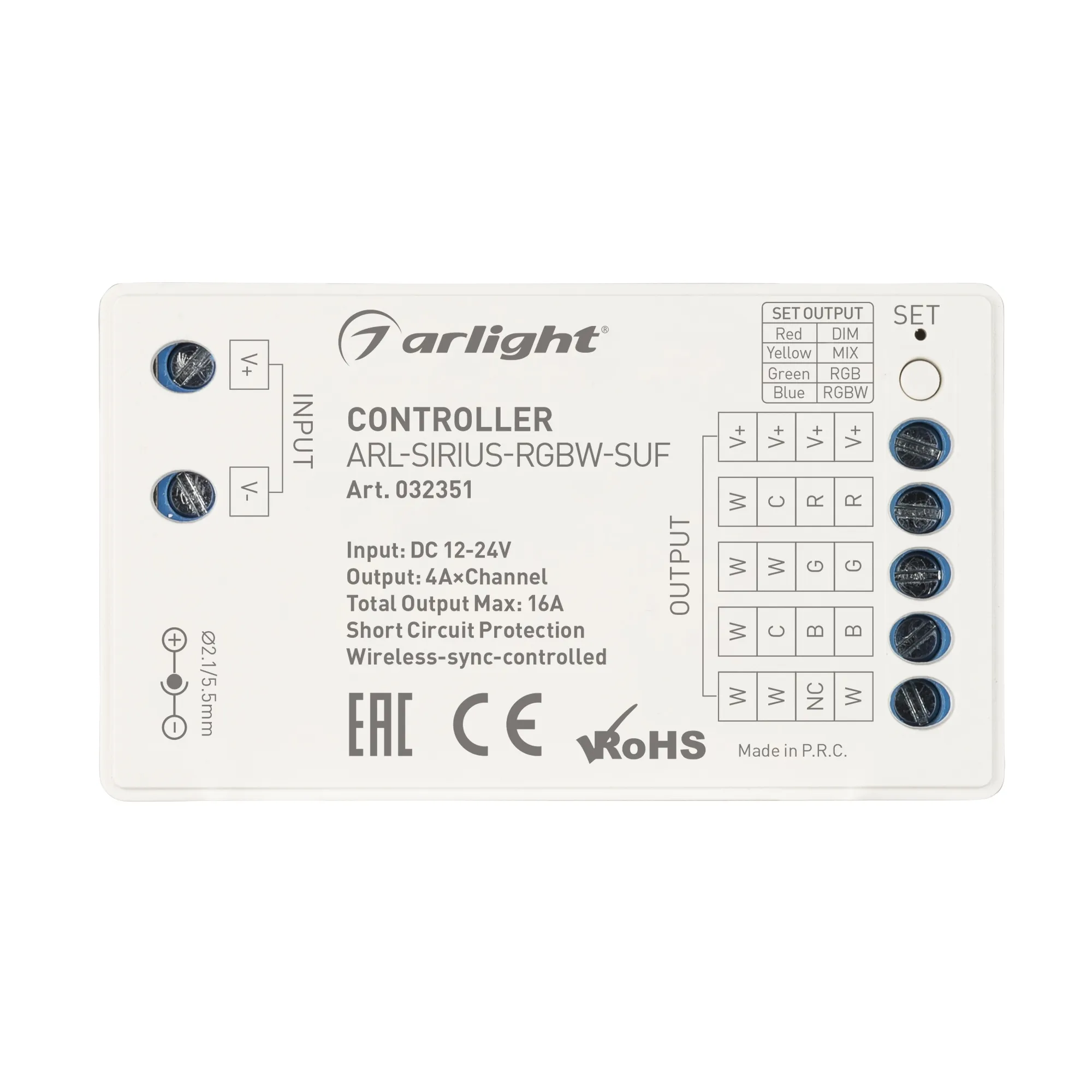 Контроллер ARL-SIRIUS-RGBW-SUF (12-24V, 4x4A, 2.4G) (Arlight, IP20 Пластик, 3 года)