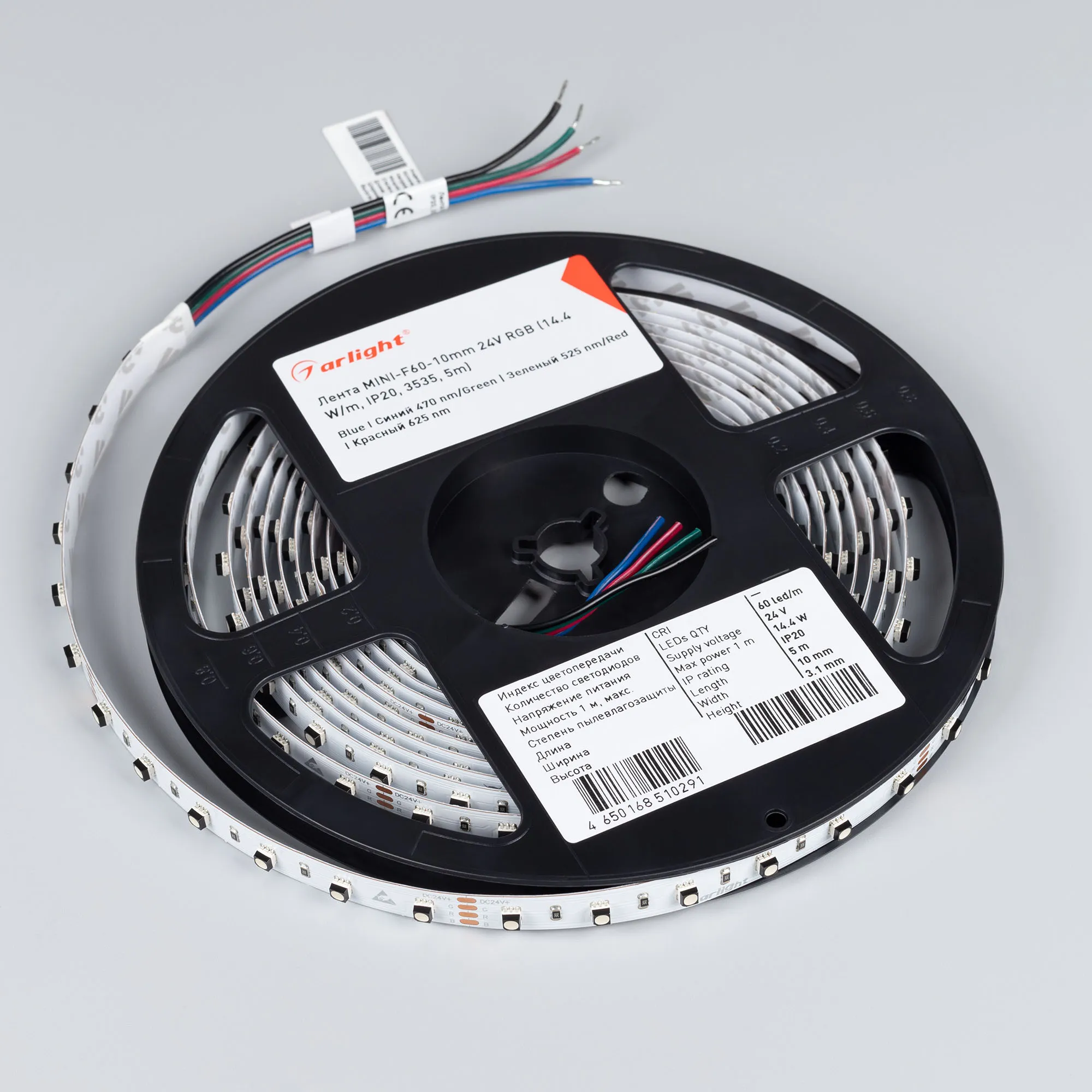 Лента светодиодная MINI-F60-10mm 24V RGB (14.4 W/m, IP20, 3535, 5m) (Arlight, Открытый)
