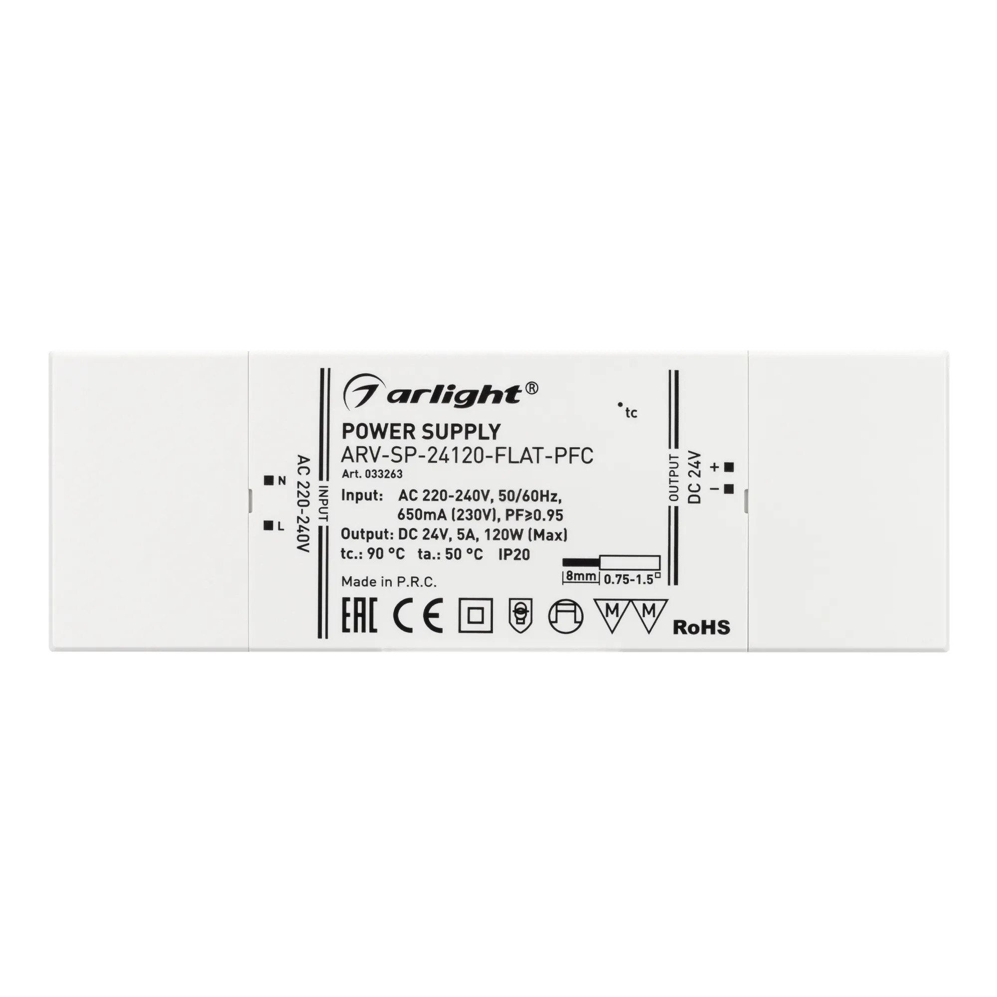 В магазине Мельковский Свет Вы можете купить "Блок питания ARV-SP-24120-FLAT-PFC (24V, 5A, 120W) (Arlight, IP20 Пластик, 5 лет)"