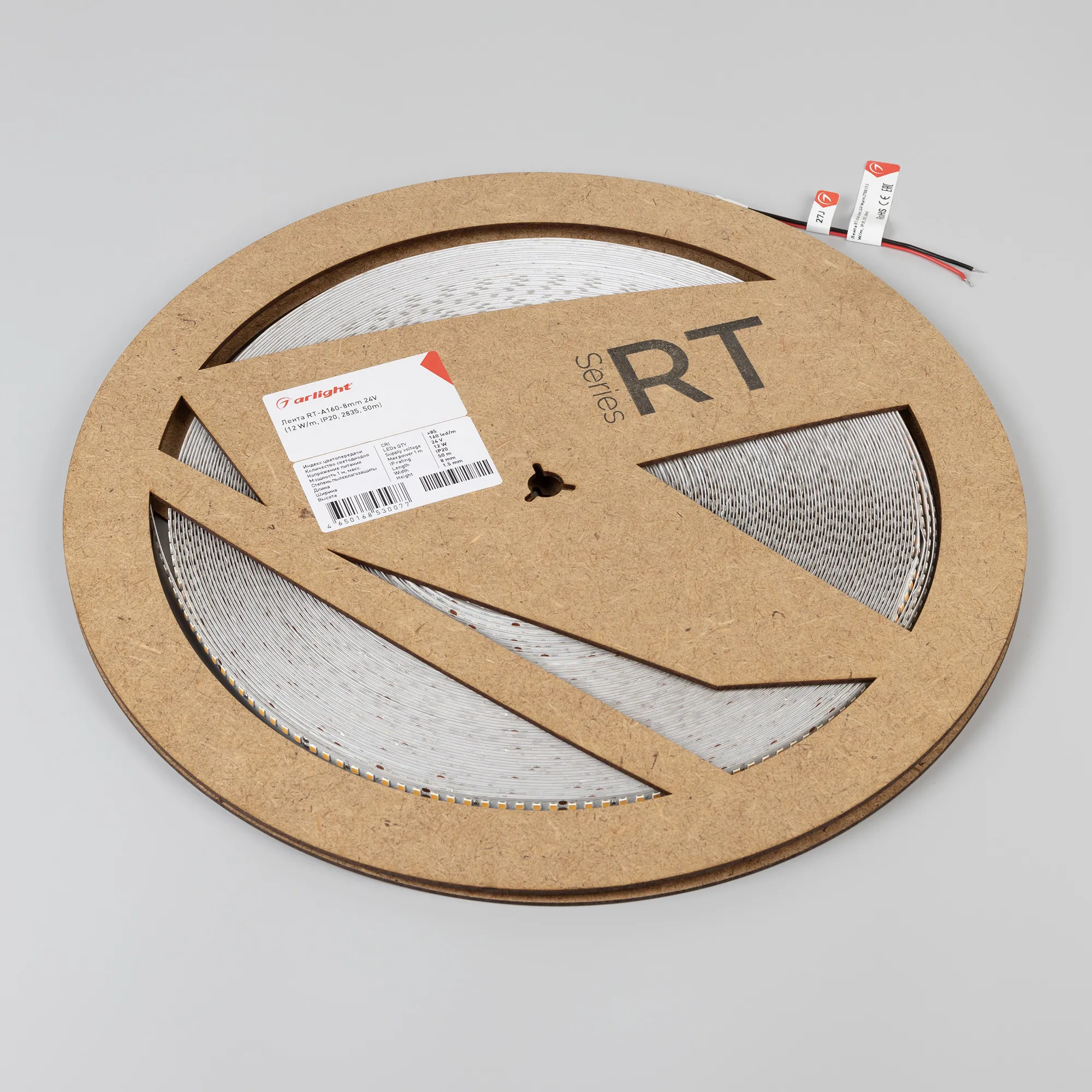 Светодиодная лента (монтажная бобина 50м) RT-A160, открытая. Светодиоды 2835, 160 шт/м (8000 шт на 50 м), белая плата, ширина 8 мм, скотч 3M. Цвет ТЁПЛЫЙ 3500 K, цветопередача CRI>85, угол 120°. Питание 24V, мощность 12 Вт/м (600 Вт на 50 м). Размеры 50000x8x1.5 мм. Мин.отрезок 50 мм, 8 светодиодов. Цена за 1 м. Разрезать перед подключением. Макс.длина подключения 5 м!
