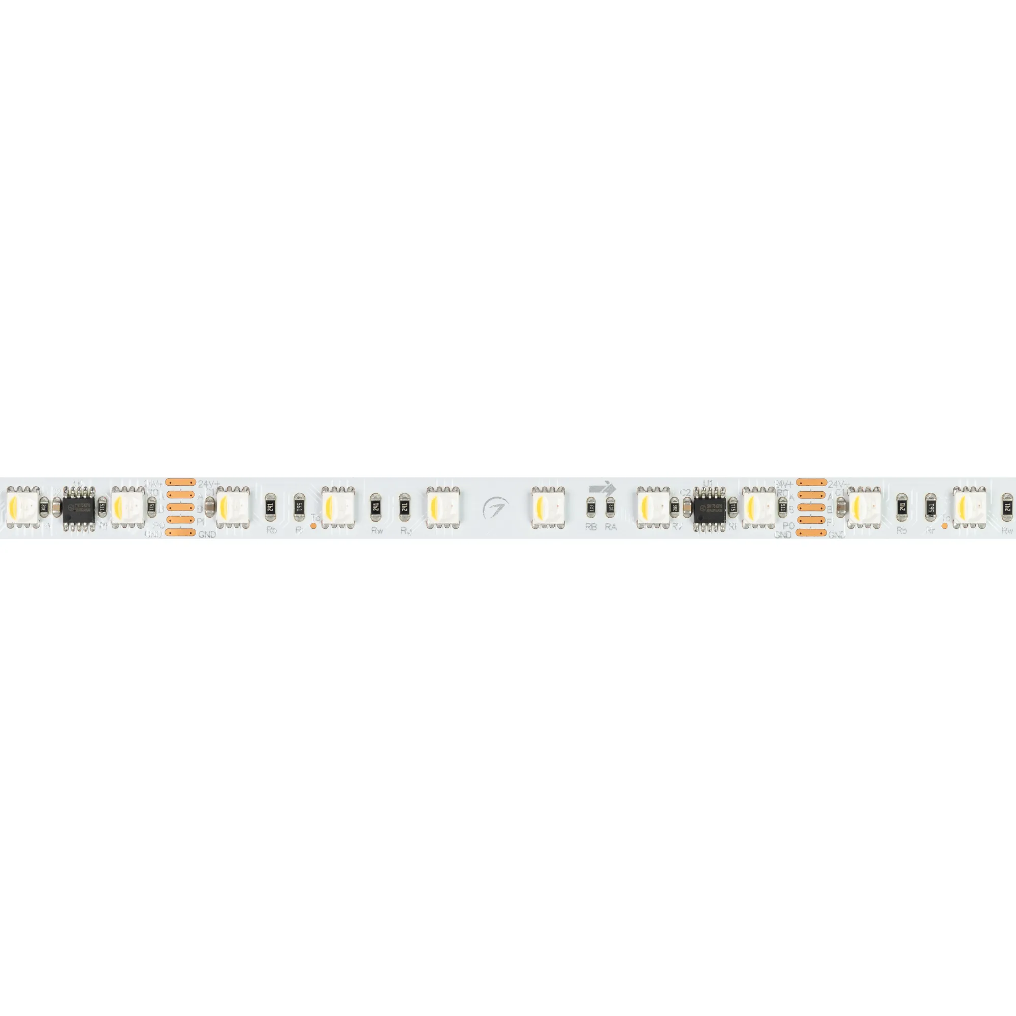 Светодиодная лента DMX серии B60 с микросхемой SM16512PS. Светодиоды SMD 5060, 60 шт/м, 10 pixels на 1 м (50 pixels на 5 м), 1 pixel = 6 светодиодов, белая плата шириной 10 мм, скотч 3М. Цвет RGB + ДНЕВНОЙ 4000K, индекс цветопередачи CRI>80, угол 120°. Питание 24 В, мощность 18 Вт/м (90 Вт на 5 м). Размеры 5000x10x2.1 мм. Мин. отрезок 100 мм, 6 светодиодов. Цена за 1 м.