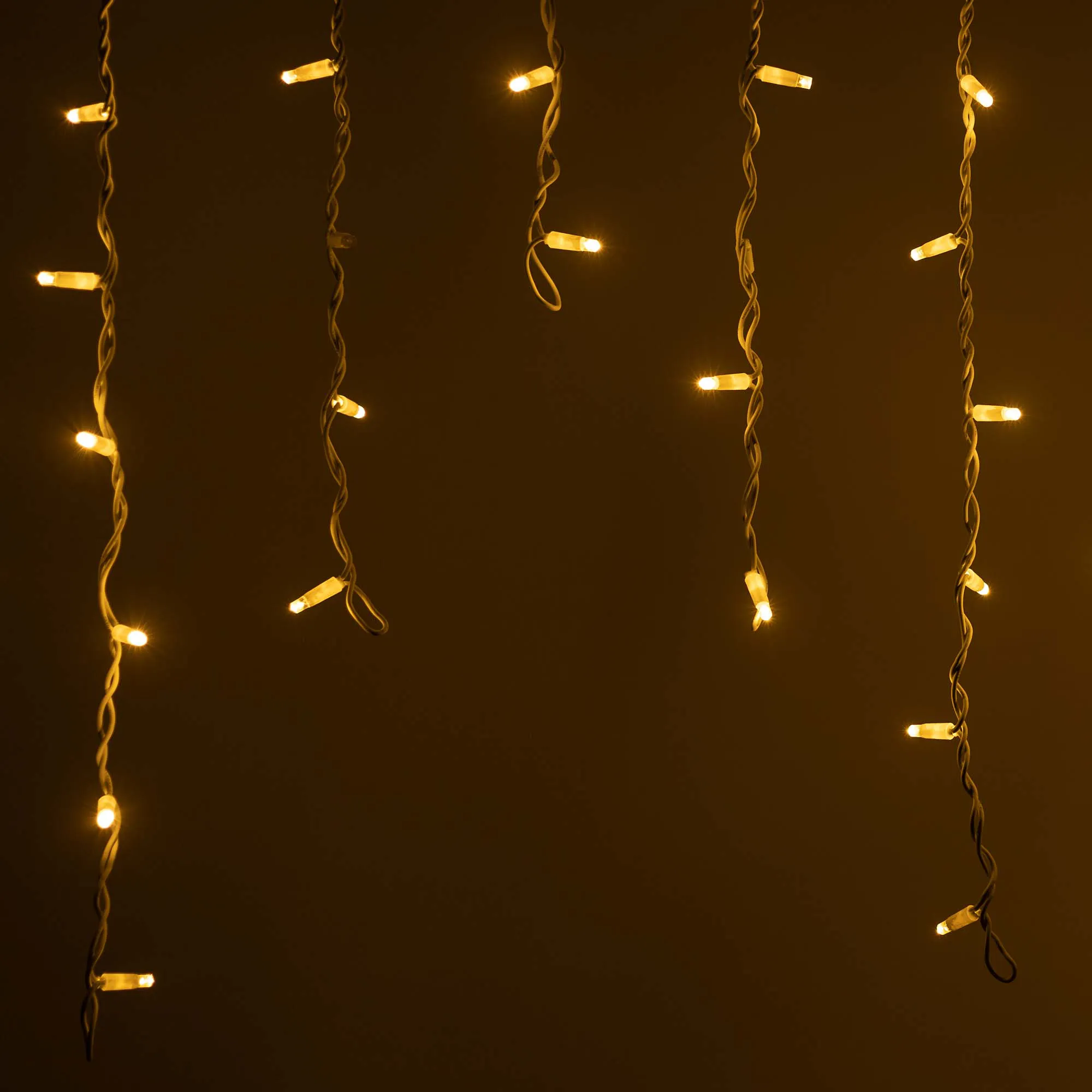 Светодиодная бахрома Classic. Размер 4000 мм (длина 4000 мм, по длине 32 нити высотой 200/600 мм). Количество светодиодов 128 шт размером 7 мм. Основной цвет свечения ТЕПЛЫЙ БЕЛЫЙ (3000 К), эффект мерцания редких точек ТЕПЛЫЙ БЕЛЫЙ (3000К) с мягким световым рисунком (выпуклая молочно-белая линза), соотношение светодиодов: 106 теплых постоянного свечения / 22 белых с мерцанием. Эффект частого мерцания. Провод белый, каучук. Питание 230 В, Мощность 6 Вт, защита IP65, применение на улице под навесом. Аксессуары для подключения приобретаются отдельно.