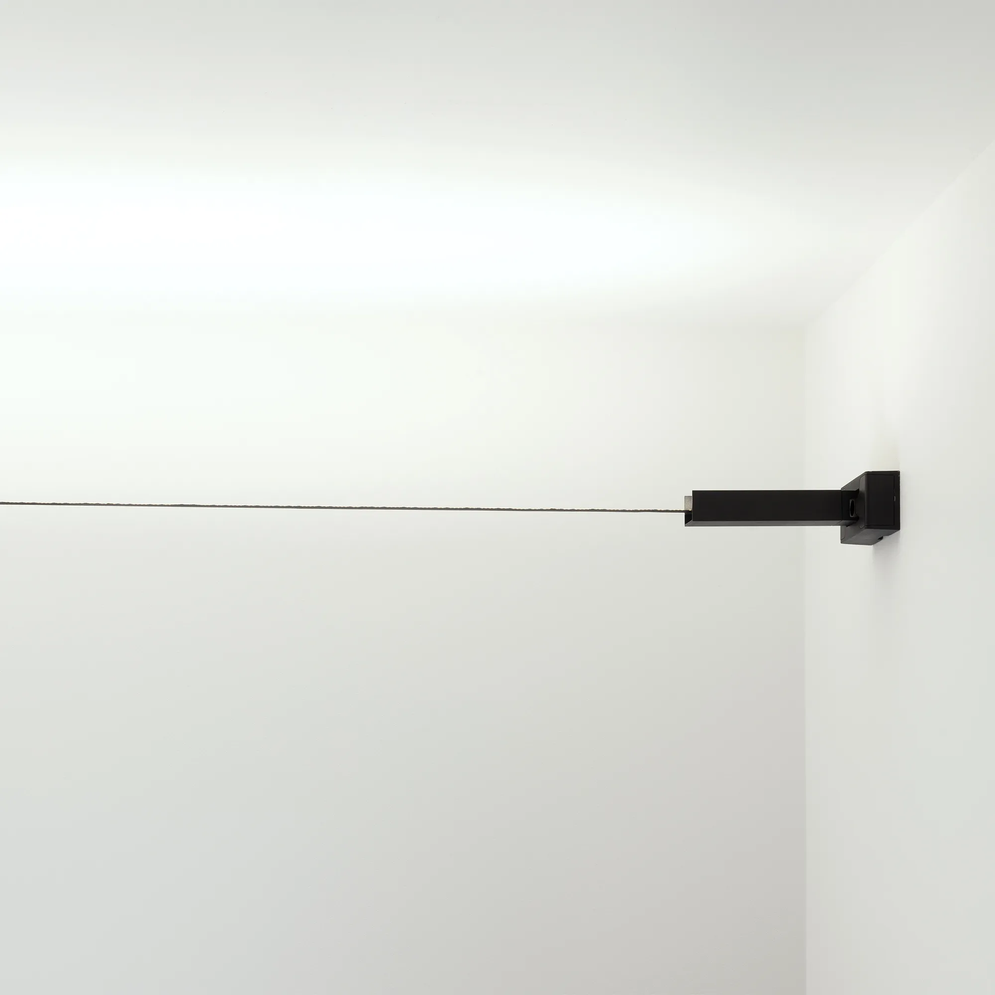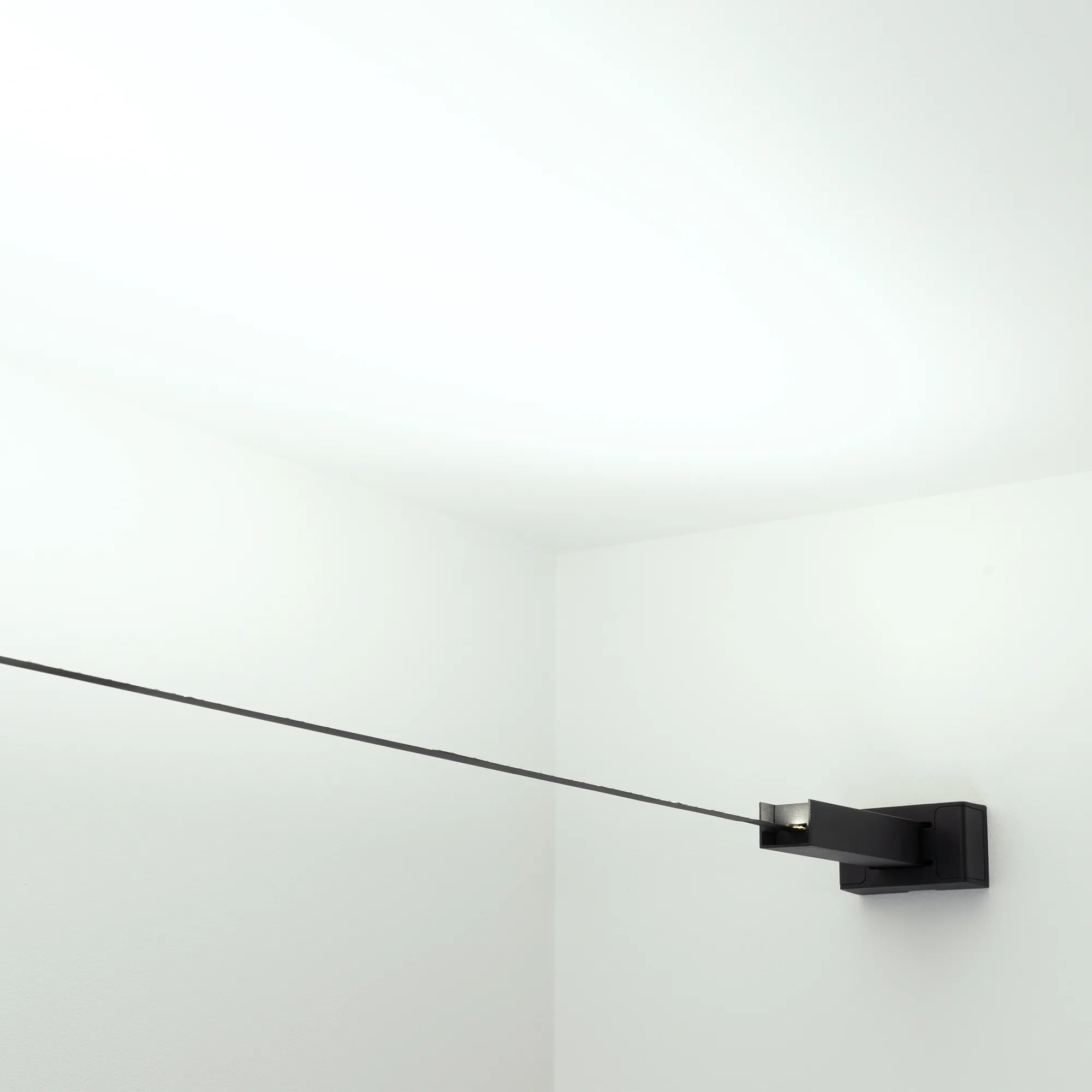 Лента-трос STINGRAY. В комплект входят: Открытая светодиодная лента RT-A120, стальное полотно для ленты 5 м, ширина 15 мм, 2 настенных крепления, аксессуары для фиксации и монтажа. Цвет - черный.