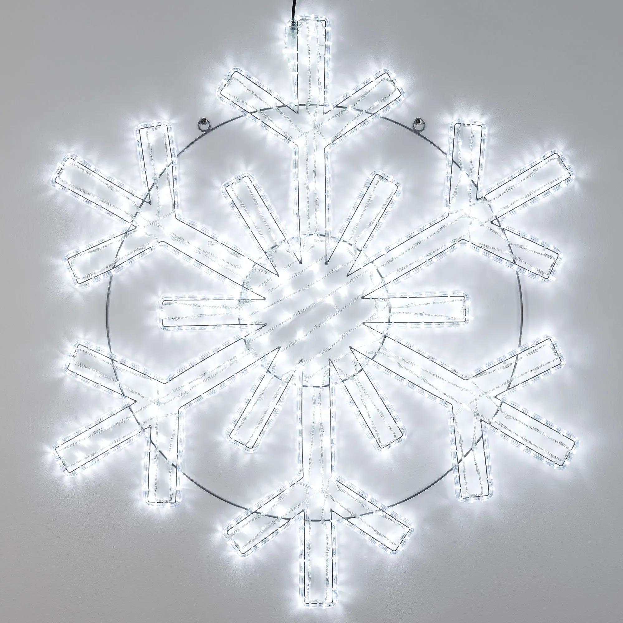Светодиодная фигура СНЕЖИНКА. Размер 1250x1200 мм. Цвет светодиодов БЕЛЫЙ (6000 К), постоянное свечение. 604 светодиода. Напряжение питания 230 В, потребляемая мощность 36.5 Вт, степень пылевлагозащиты IP65. Фигура укомплектована проводом питания для подключения к сети 230 В (без вилки питания).