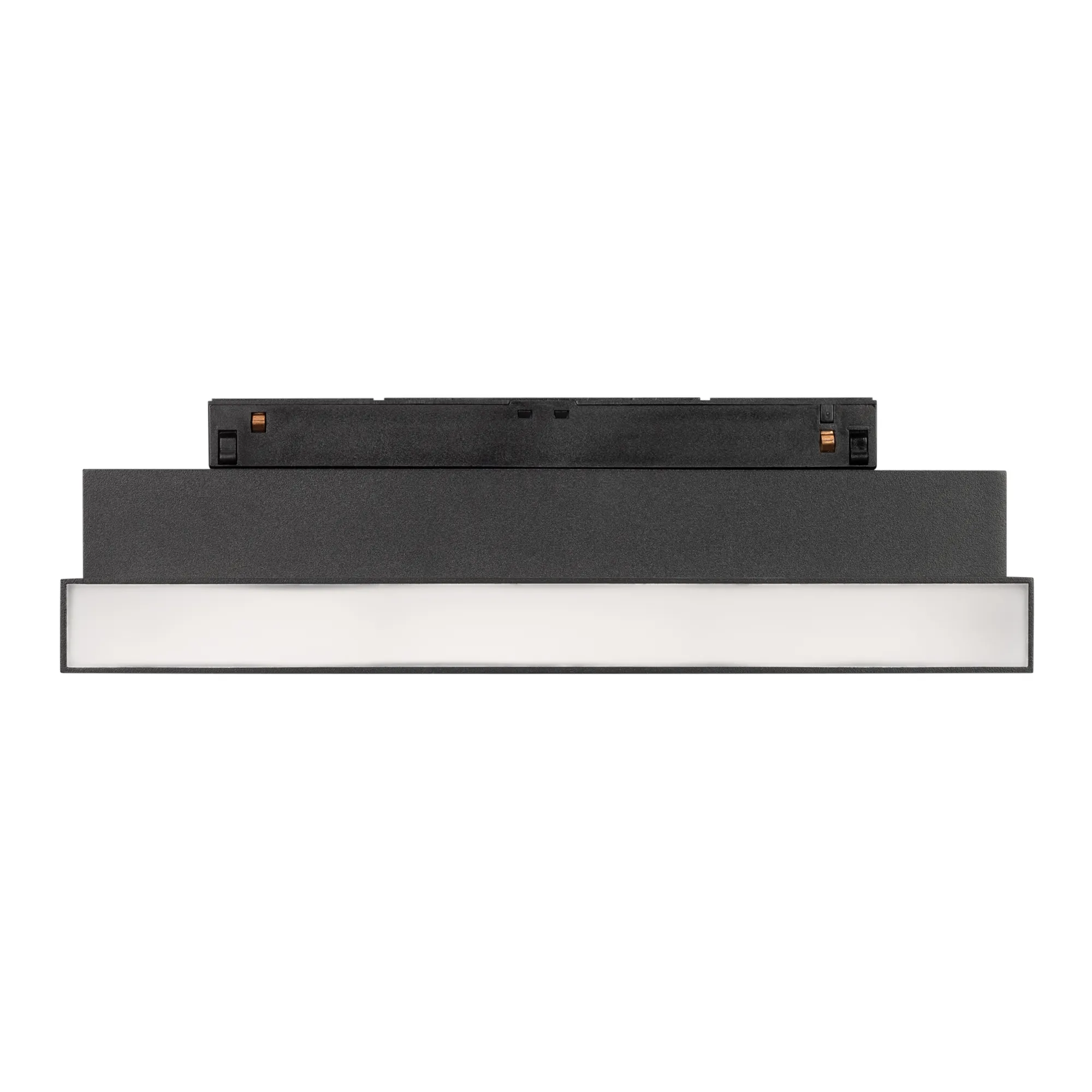Светильник для магнитных треков MAG-ORIENT шириной 26 мм с управлением DALI. Мощность 12 Вт, св. поток 760 лм, 64 лм/Вт, дневной 4000 K, CRI>90, угол 80°, напряжение питания 48 В. Черный прямоугольный корпус из металл, экран поликарбонат, степень защиты IP20. Размер: длина 231 мм, ширина 23 мм, высота 107 мм. Монтаж на трек MAG-ORIENT. Пульсация <1%.