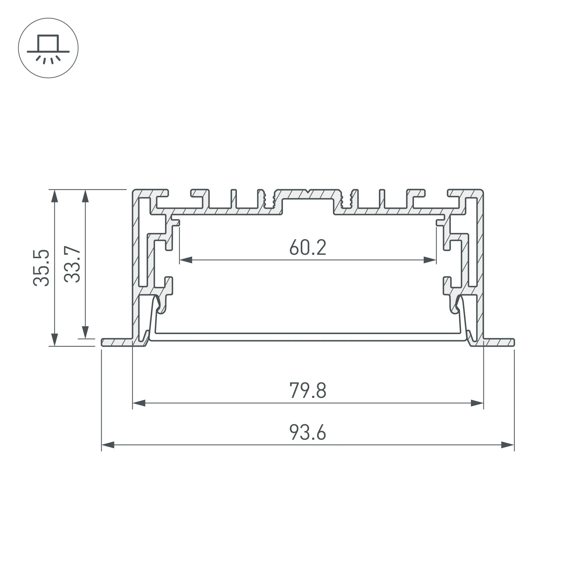 Профиль с экраном S2-LINIA94-F-2500 ANOD+OPAL (Arlight, Алюминий)