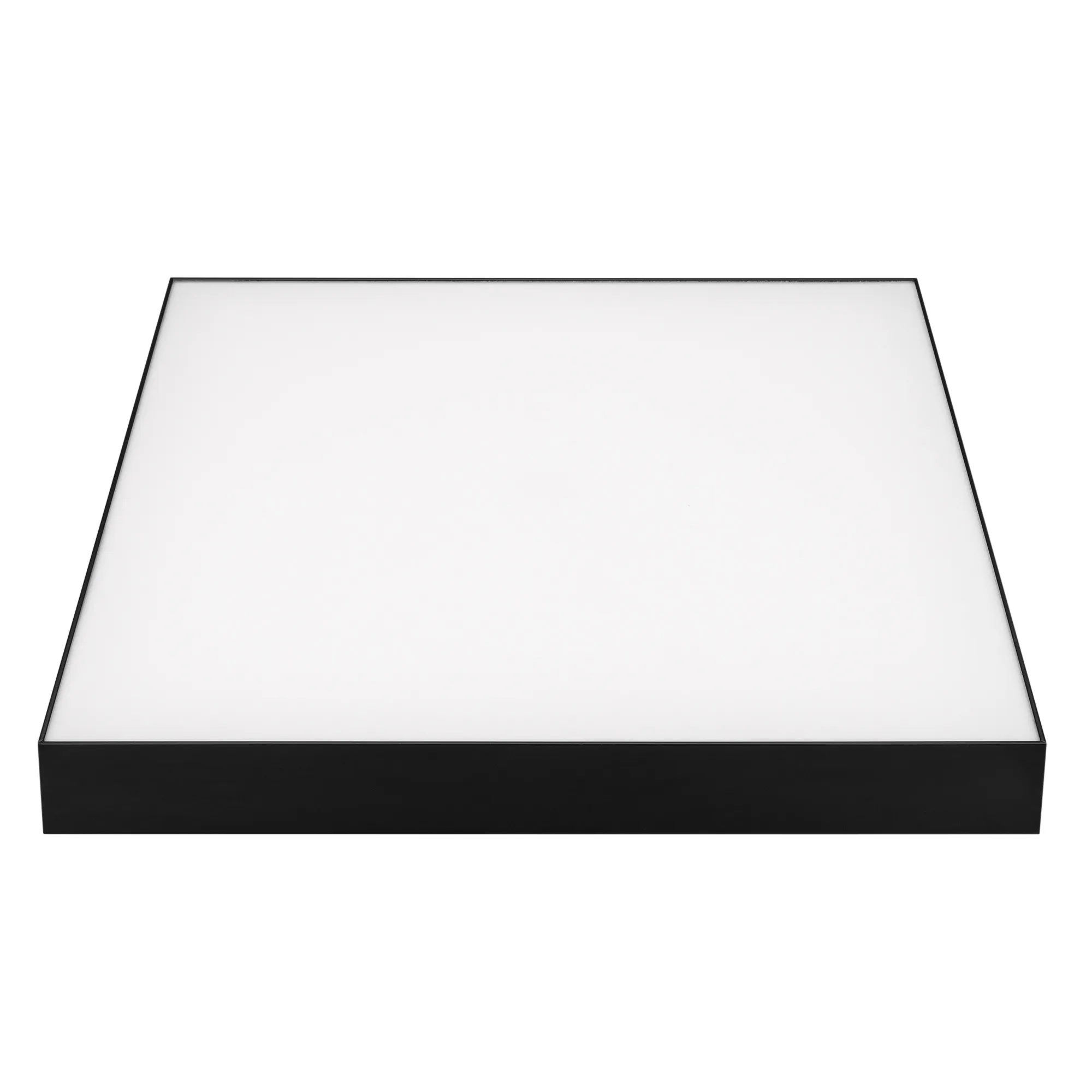 Накладной светильник. Мощность 50 Вт, св. поток 4100-4400 лм, 80-90 лм/Вт, дневной 4000 K, CRI>90, угол 120°, напряжение питания 230 В. Черный квадратный корпус из алюминия, экран PC, степень защиты IP40. Размер: длина 500 мм, ширина 500 мм, высота 64 мм. Монтаж накладной. Драйвер 27-42 В, 1200 мА, пульсация <5%.
