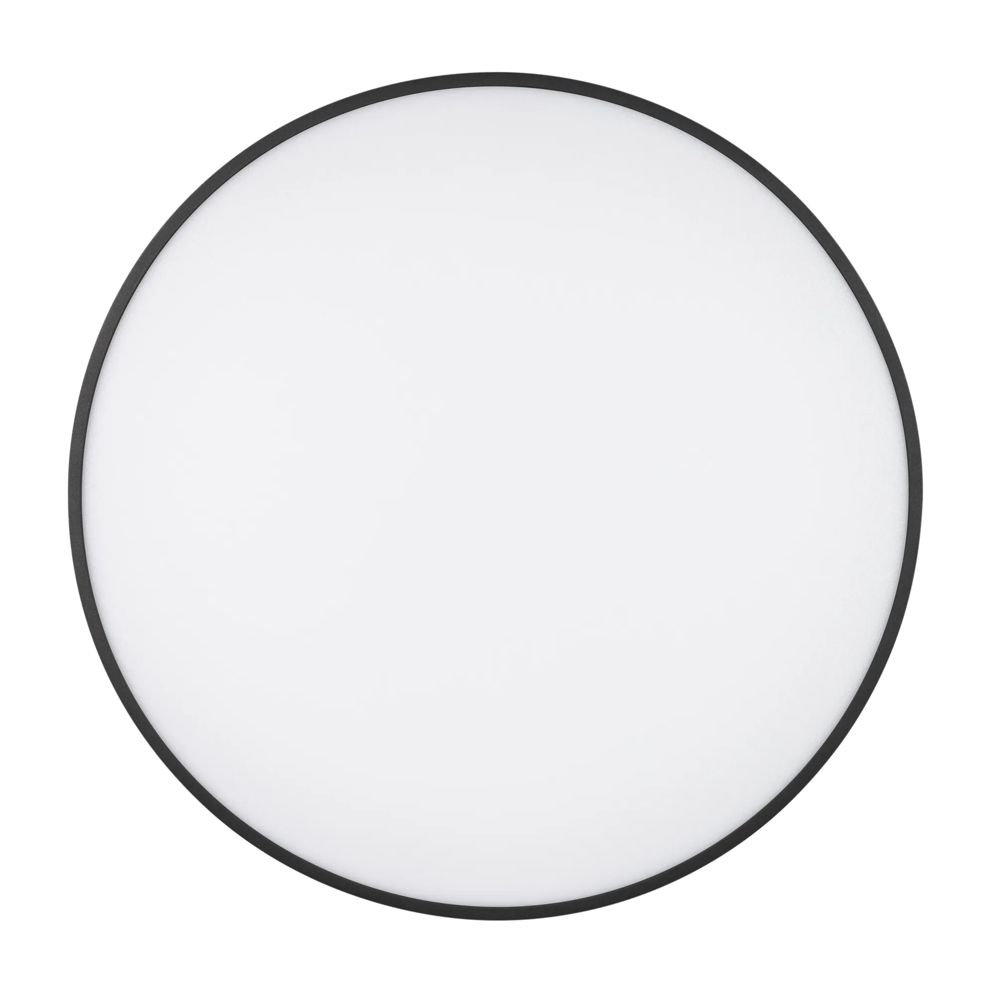 Накладной светильник. Мощность 40 Вт, св. поток 3000 лм, 75 лм/Вт, теплый 3000 K, CRI>90, угол 120°, напряжение питания 230 В. Черный круглый корпус из алюминия, экран PC, степень защиты IP40. Размер: диаметр 400 мм, высота 64 мм. Монтаж накладной. Драйвер 27-40 В, 1000 мА, пульсация <5%.