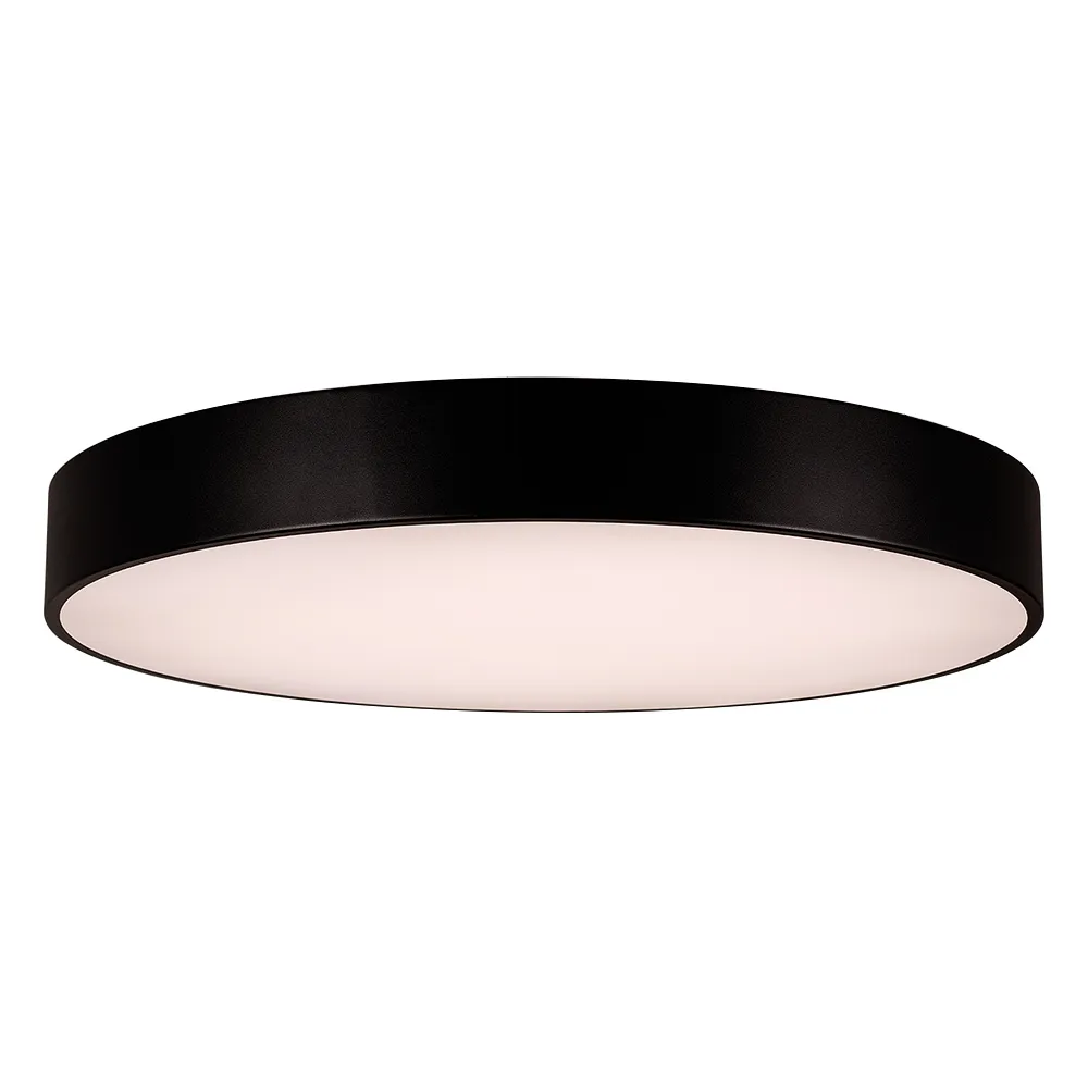 Накладной интерьерный светильник. Мощность 94 Вт, св. поток 8460 лм, 90 лм/Вт, дневной 4000 K, CRI>80, угол 120°, напряжение питания 230 В. Черный круглый корпус из алюминия, степень защиты IP20. Размер: диаметр 800 мм, высота 100 мм. Монтаж накладной. Драйвер 28-42 В, 1200 мА (2 шт.), пульсация <5%.