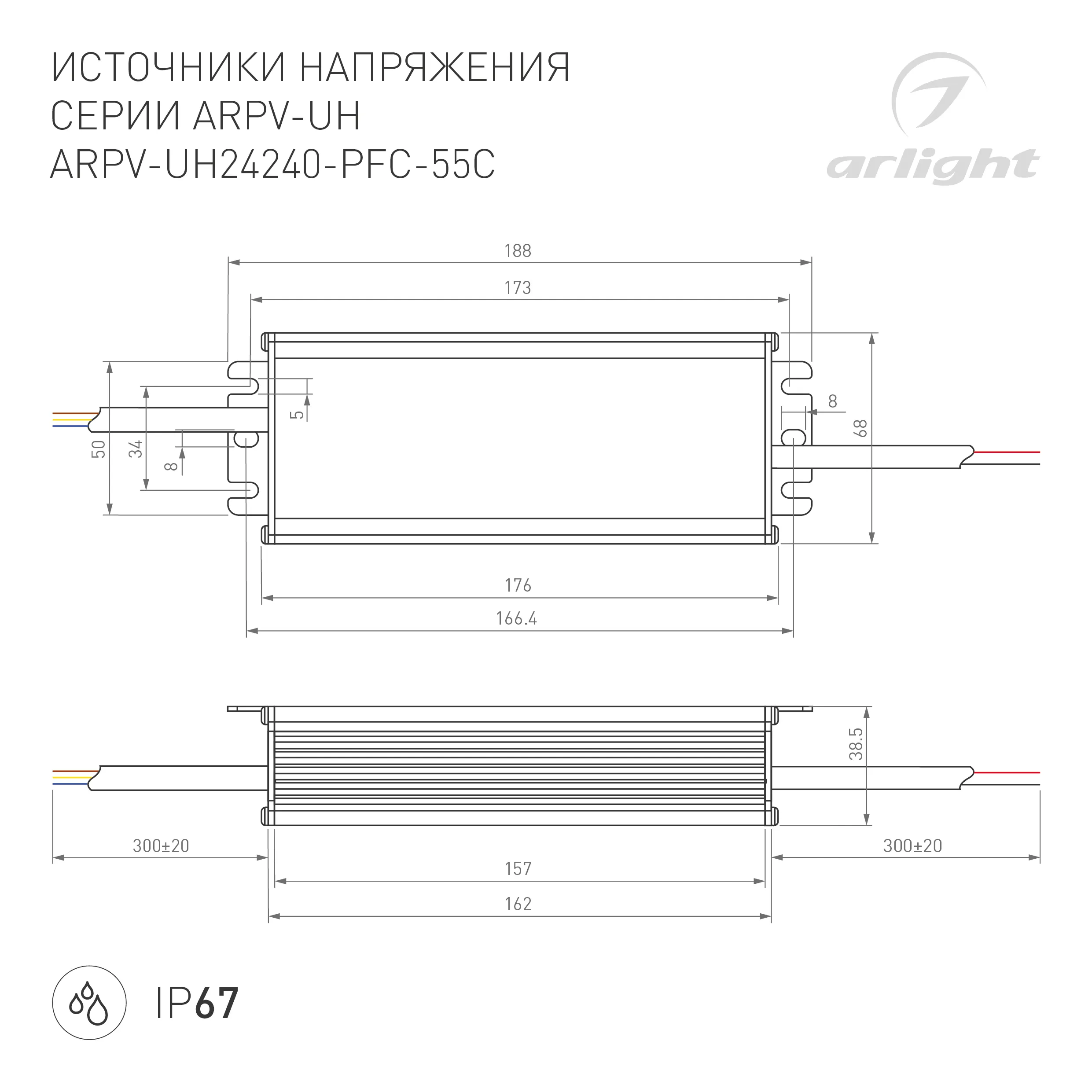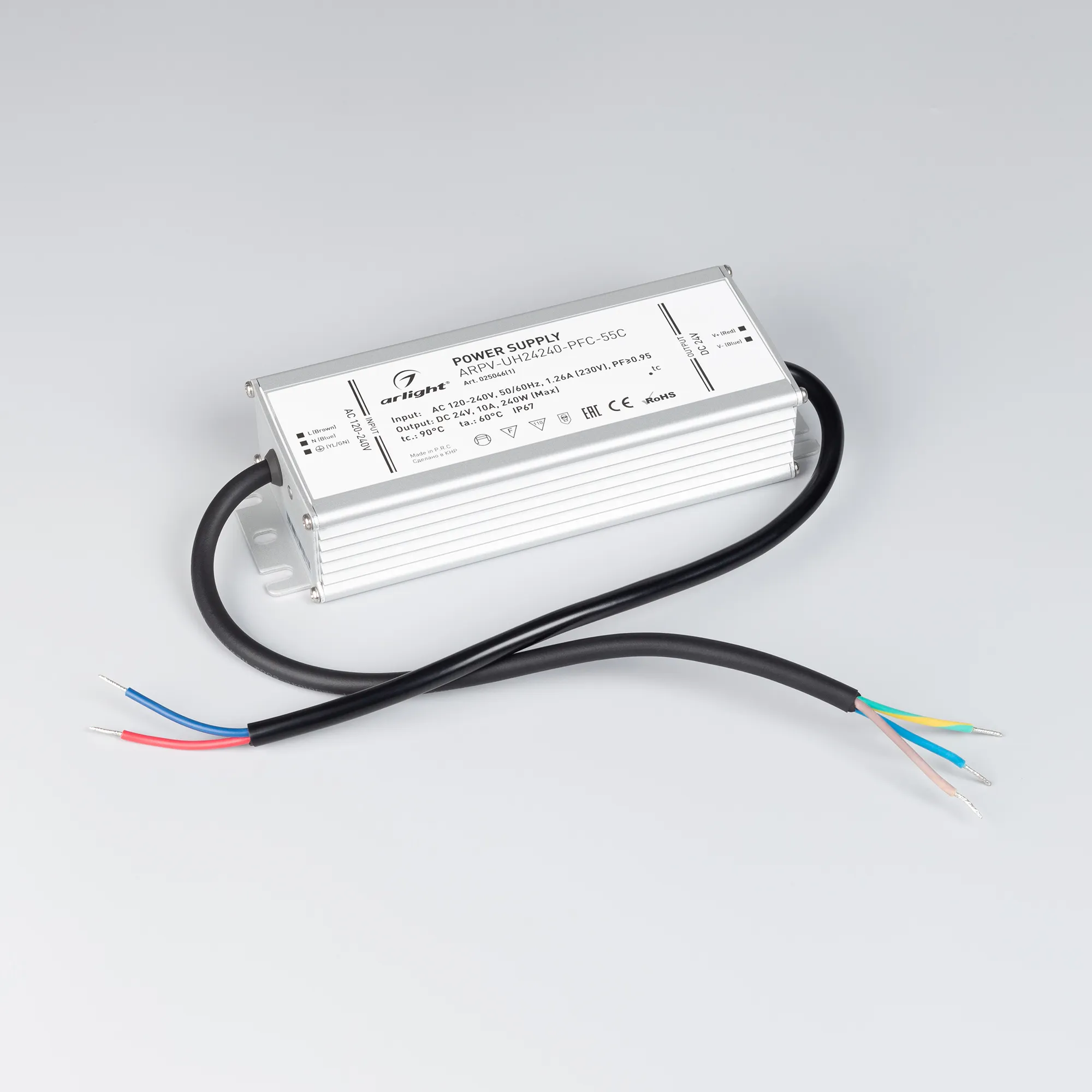 В магазине Мельковский Свет Вы можете купить "Блок питания ARPV-UH24240-PFC-55C (24V, 10.0A, 240W) (Arlight, IP67 Металл, 5 лет)"