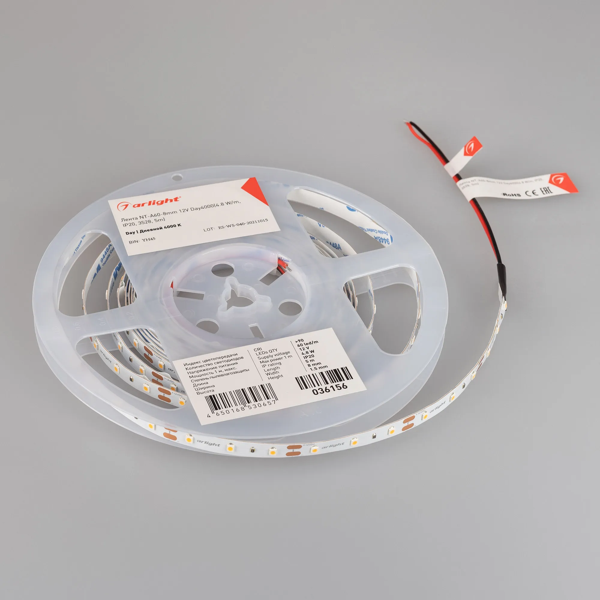 Лента светодиодная NT-A60-8mm 12V Day4000(4.8 W/m, IP20, 3528, 5m) (Arlight, Открытый)