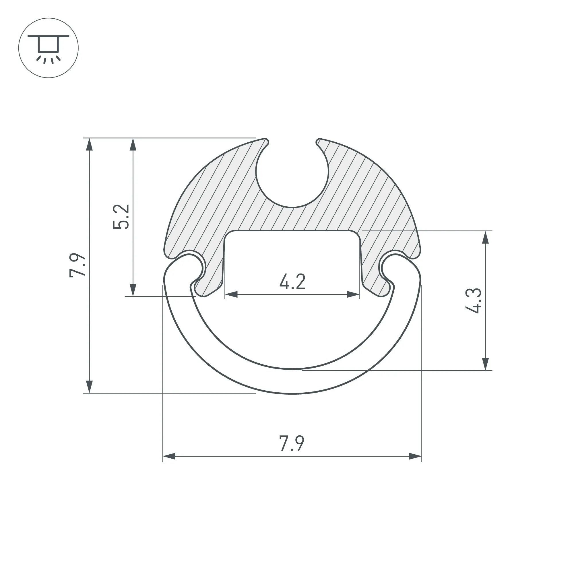 Под заказ от 50м. Алюминиевый анодированный профиль для светодиодных лент и линеек. Габаритные размеры профиля (L×W×H): 2000x7,9x5,2 мм. Габаритные размеры профиля с экраном (L×D): 2000xD7,9 мм. Ширина площадки для ленты 4,2 мм. Экраны, заглушки и другие аксессуары приобретаются отдельно. Цена за 1 метр.